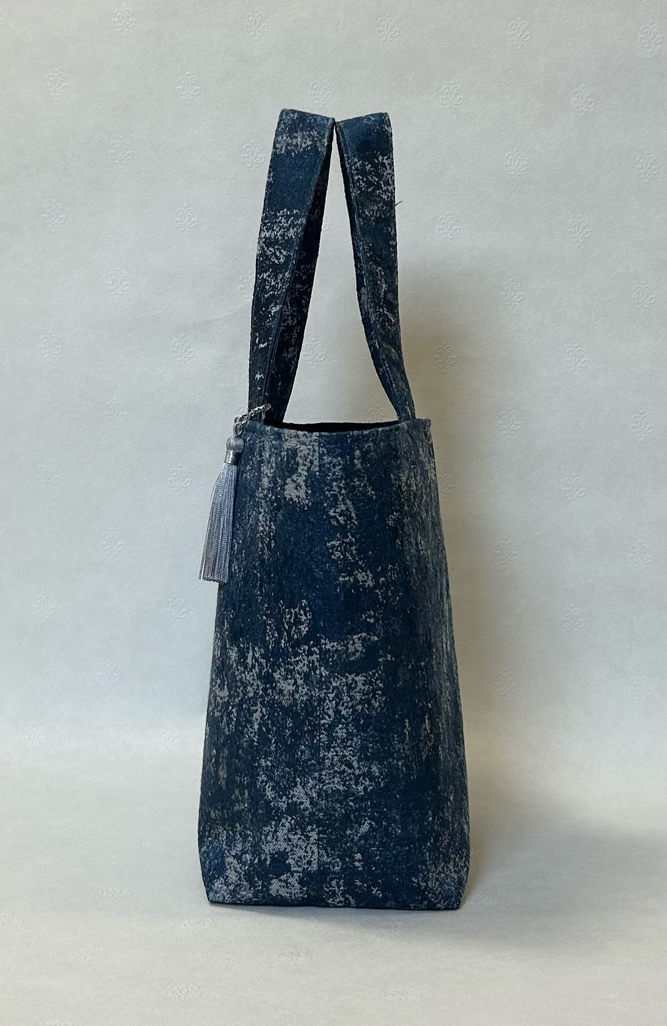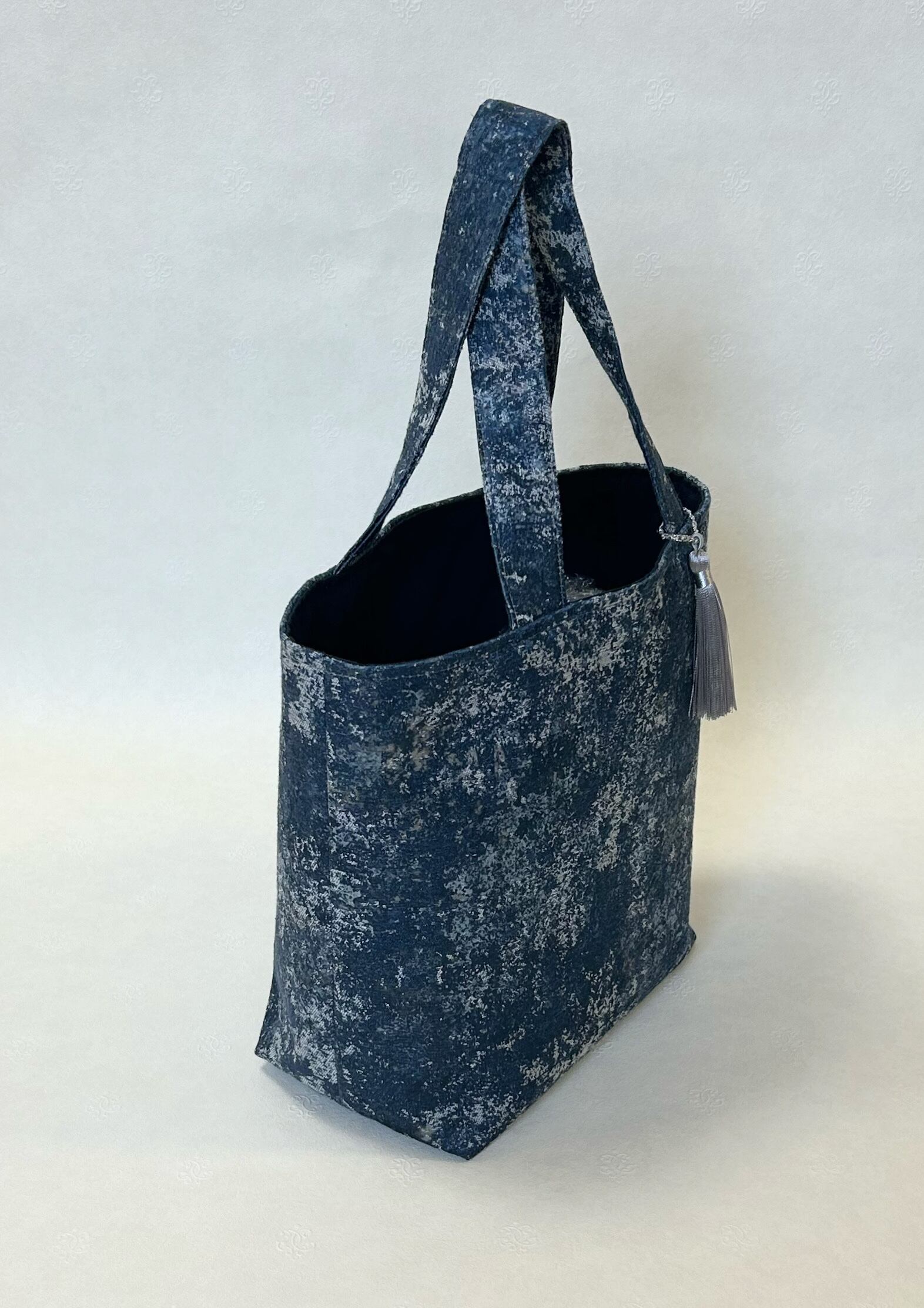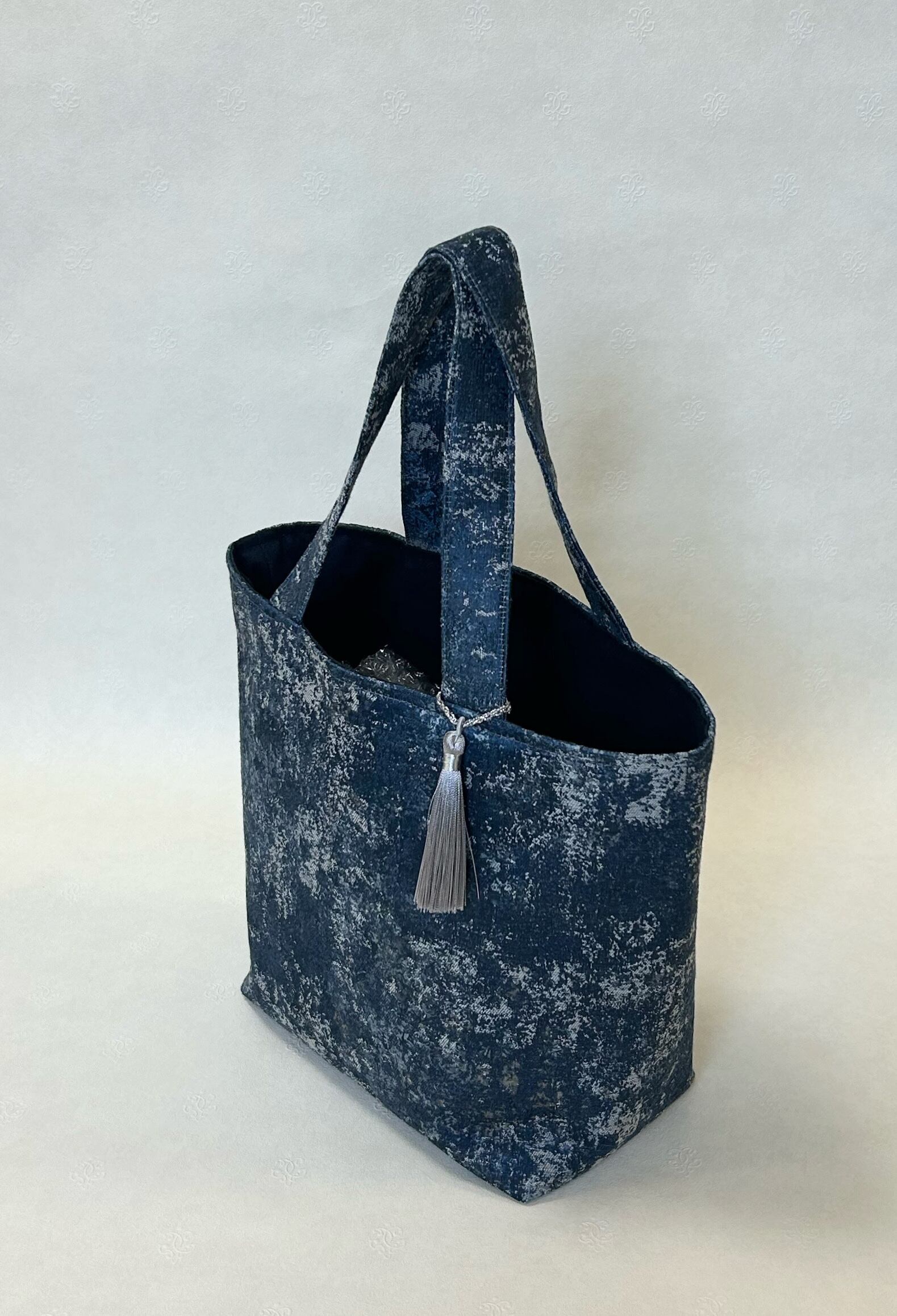 青マーブル柄トートバッグタッセル付き