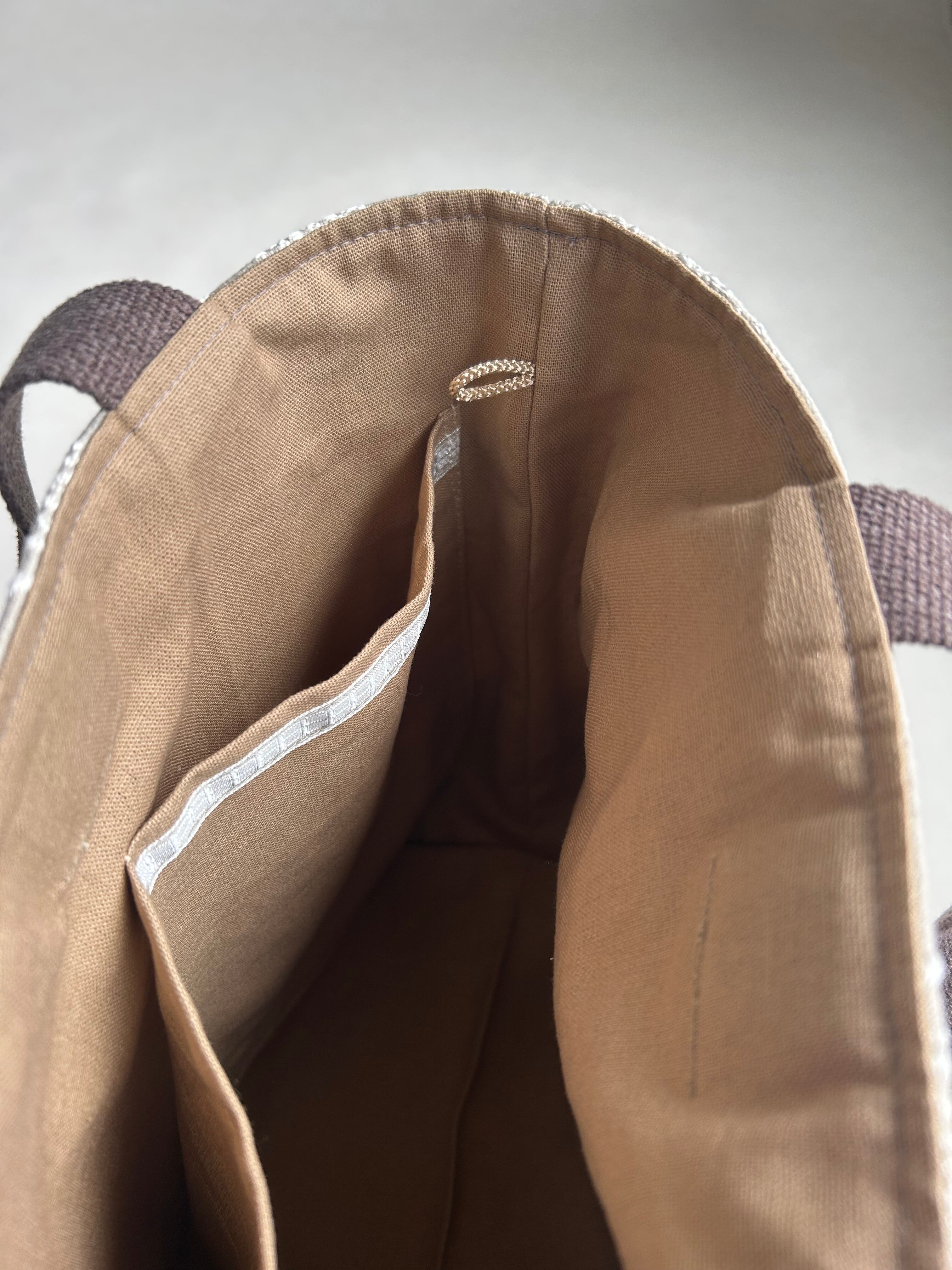 持ち手は綿麻の持ち手を使い、バックの雰囲気ともマッチしていると思います。