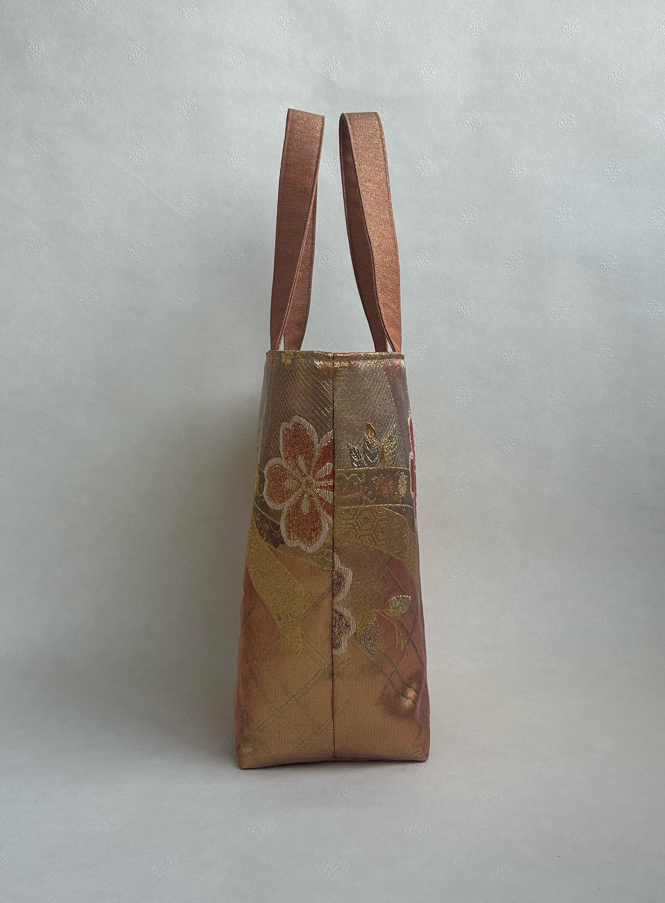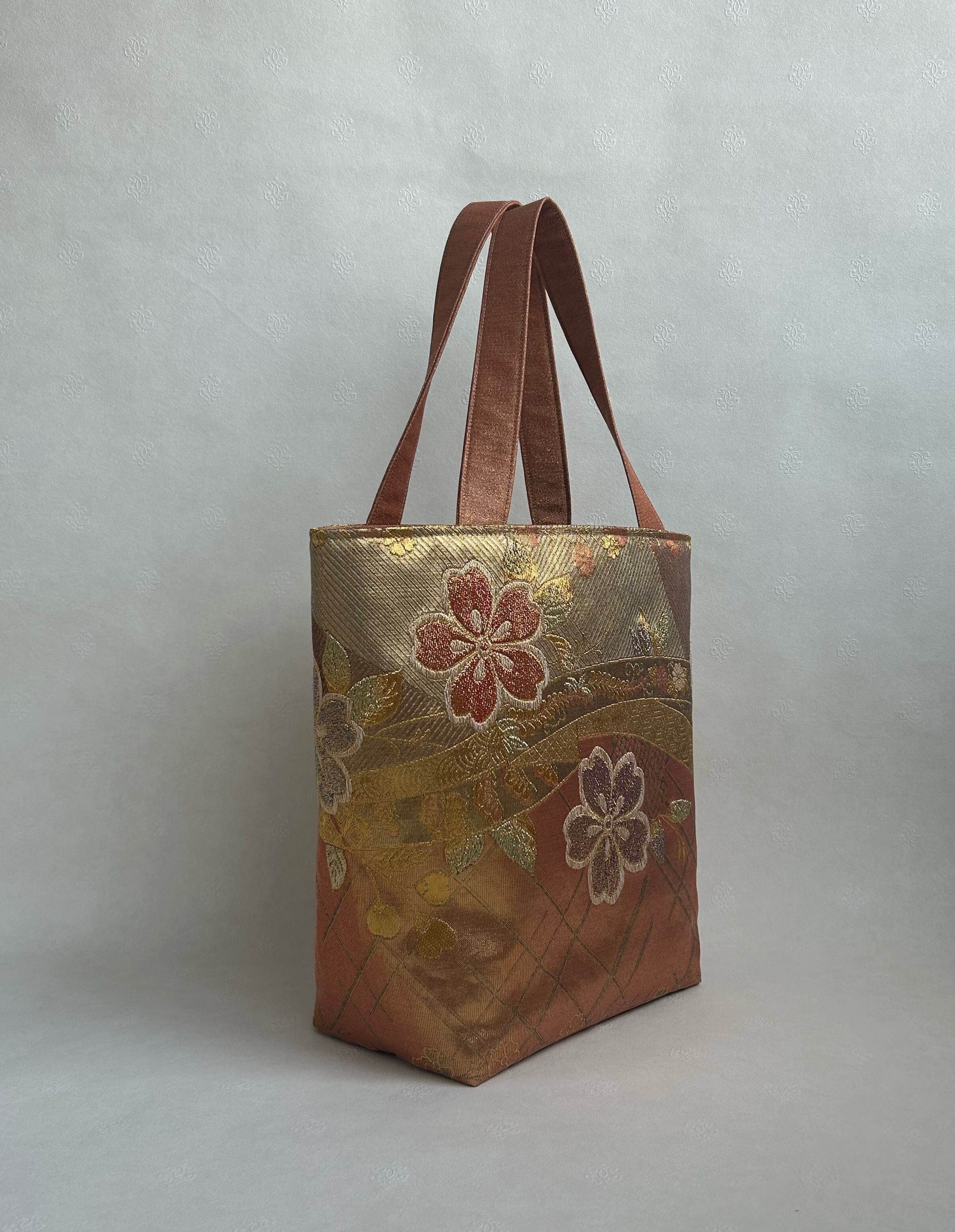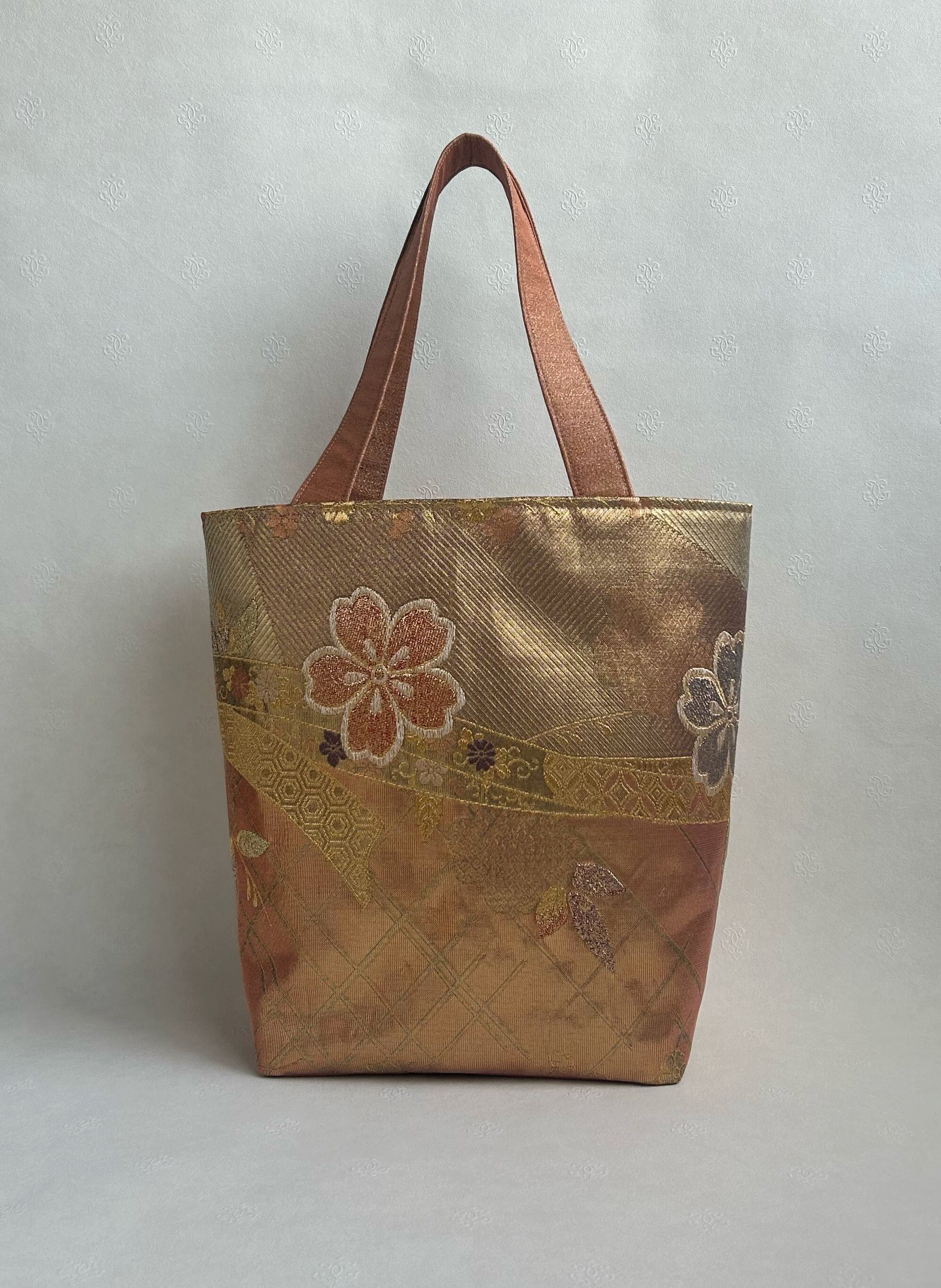 正絹袋帯桜花柄のトートバッグ マグネット付き