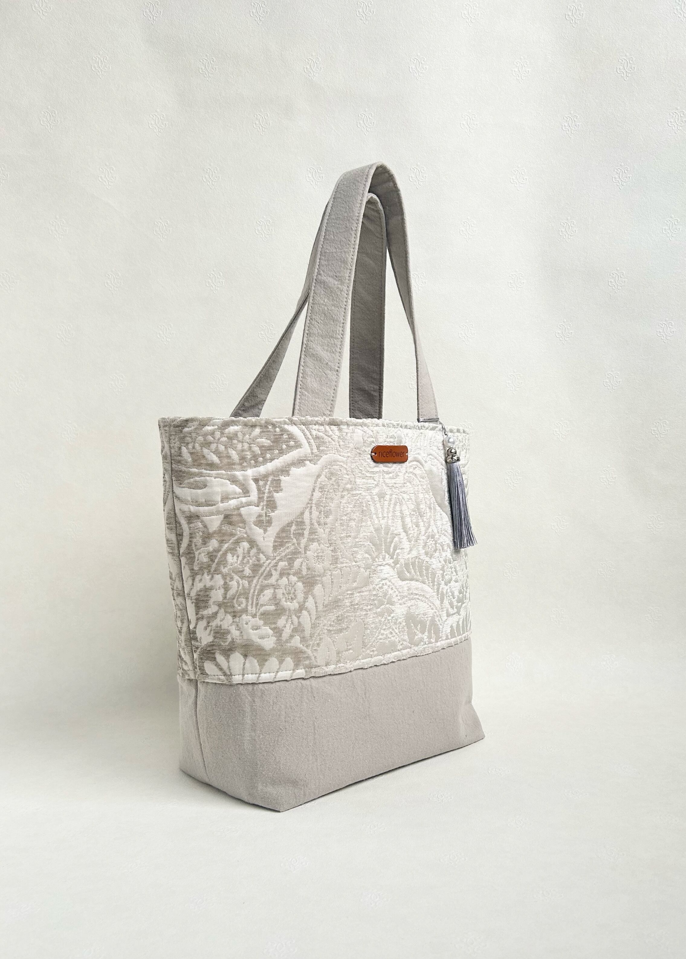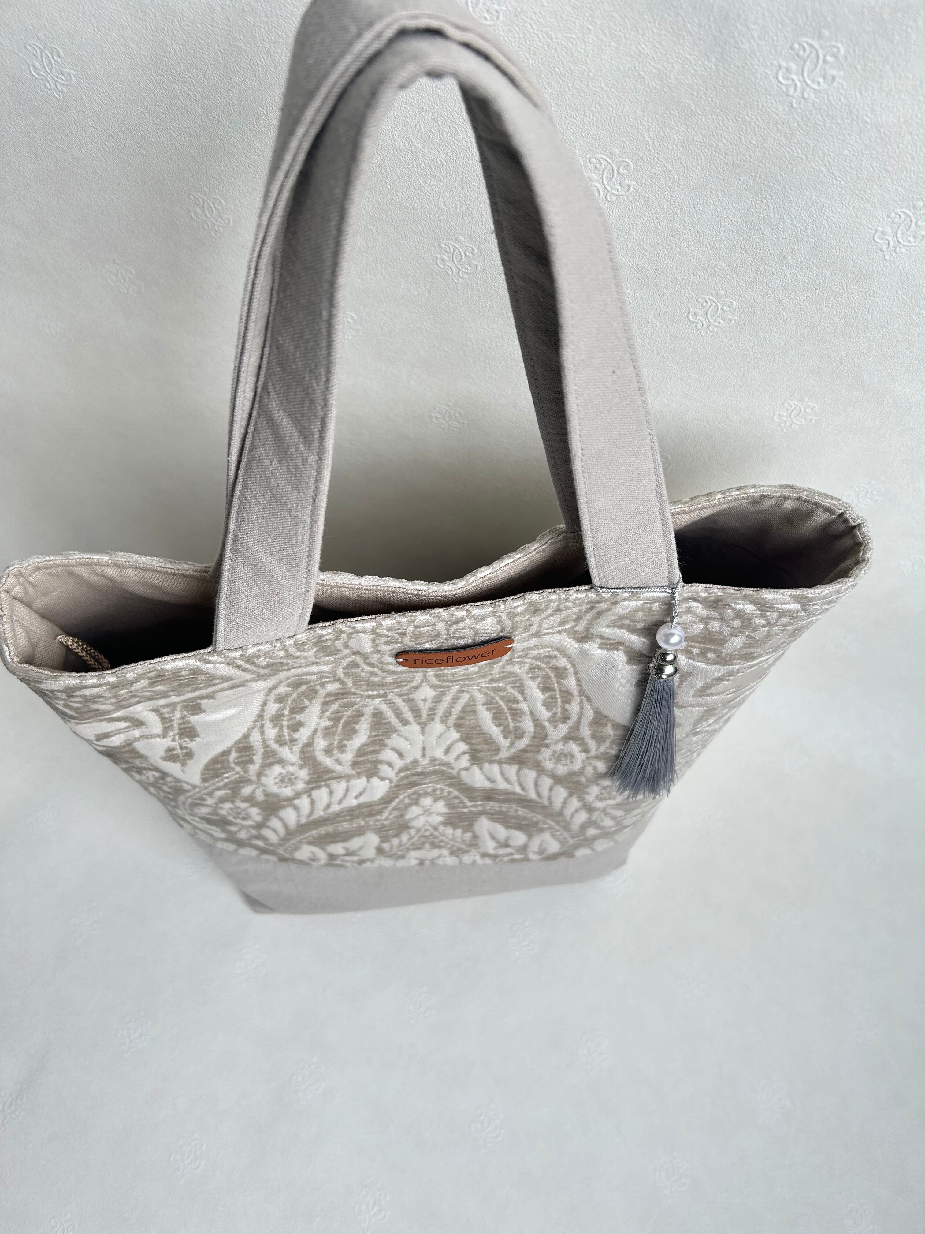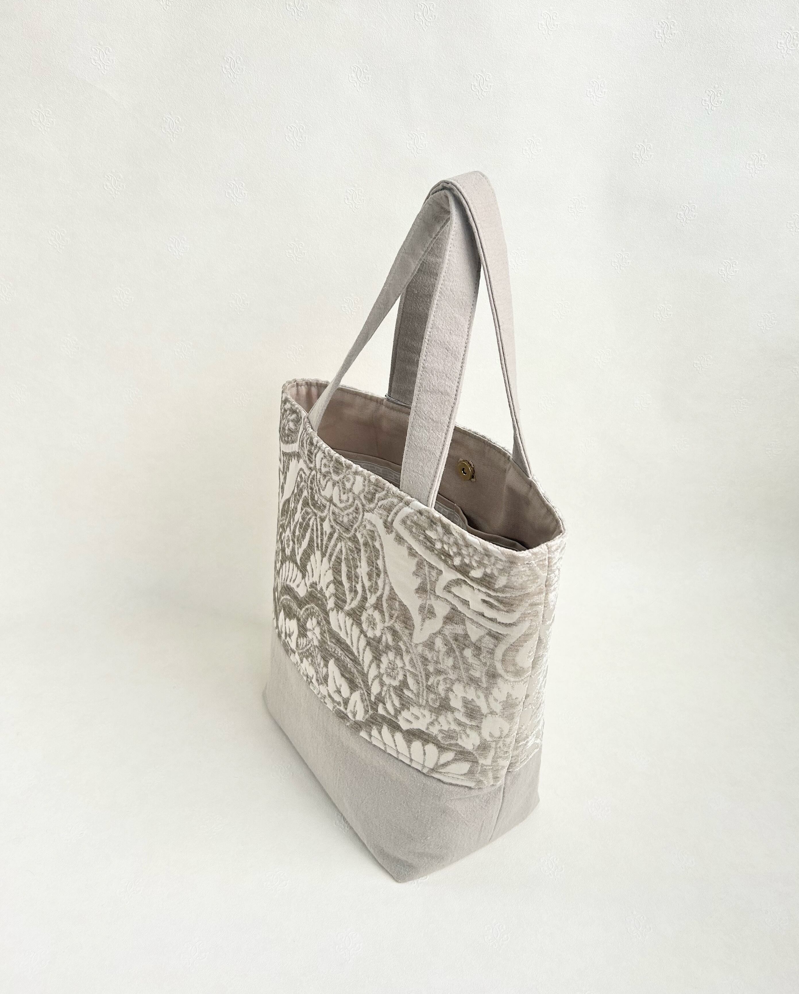 イギリスのモールとサテンの美しいジャガード織りで仕上げたトートバッグです。