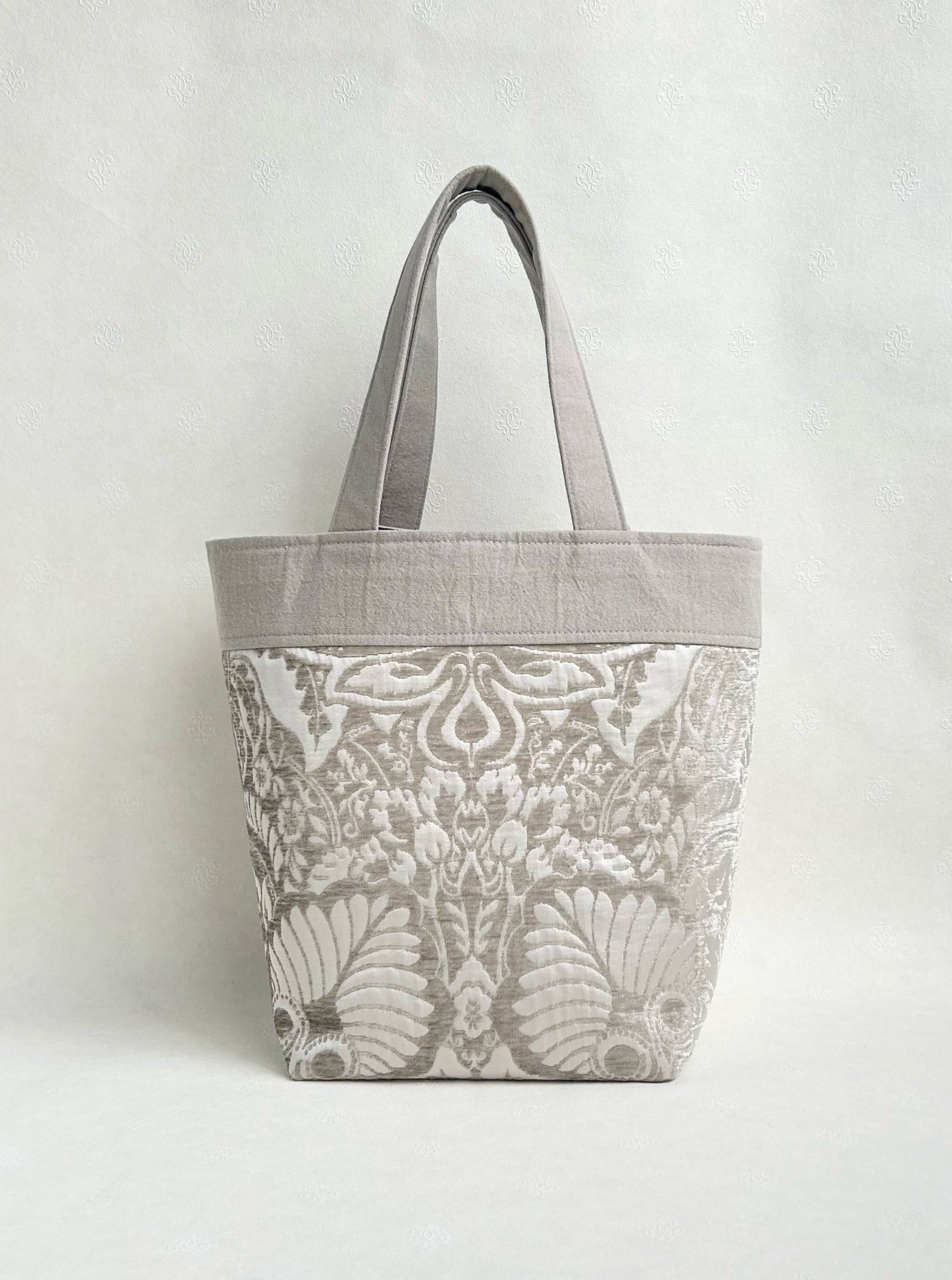 イギリスのモールとサテンの美しいジャガード織りで仕上げたトートバッグです。