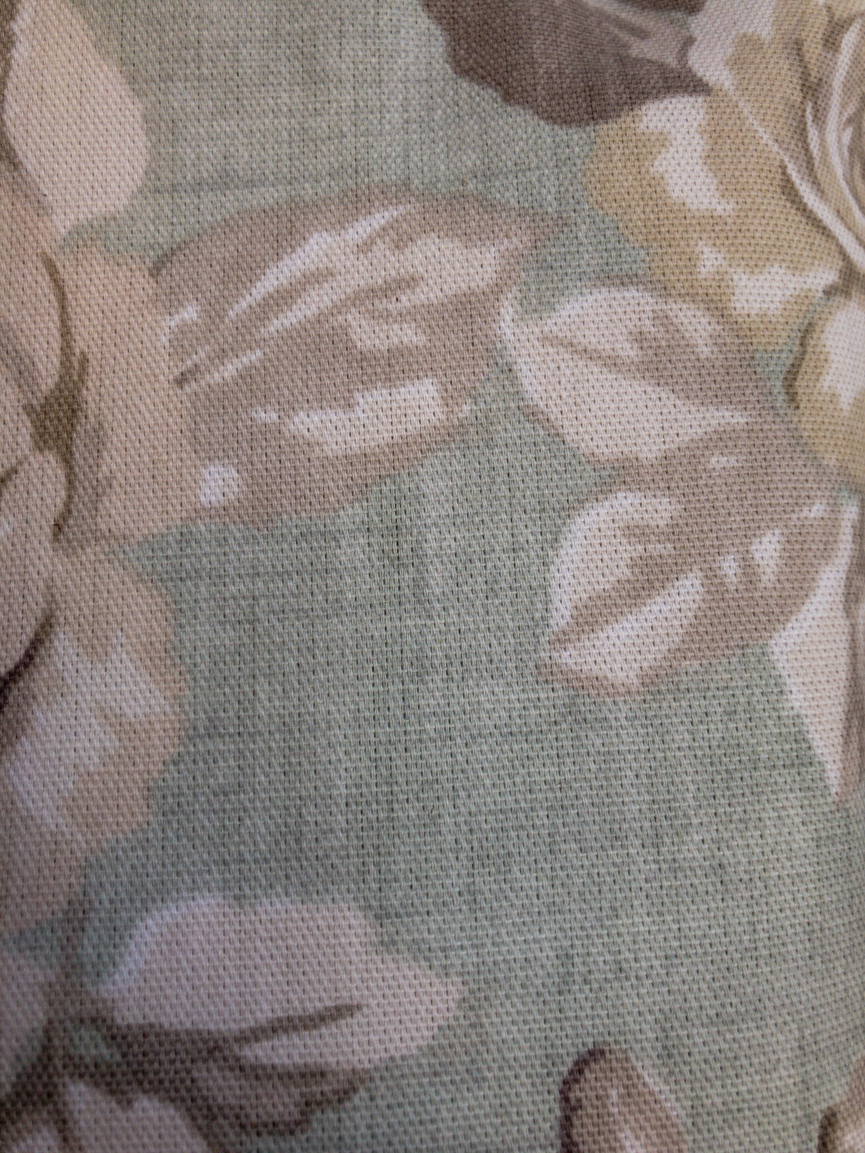 イギリスの輸入生地で、薄いコバルトブルー地にグレーやベージュのバラの落ち着いたプリント柄です。