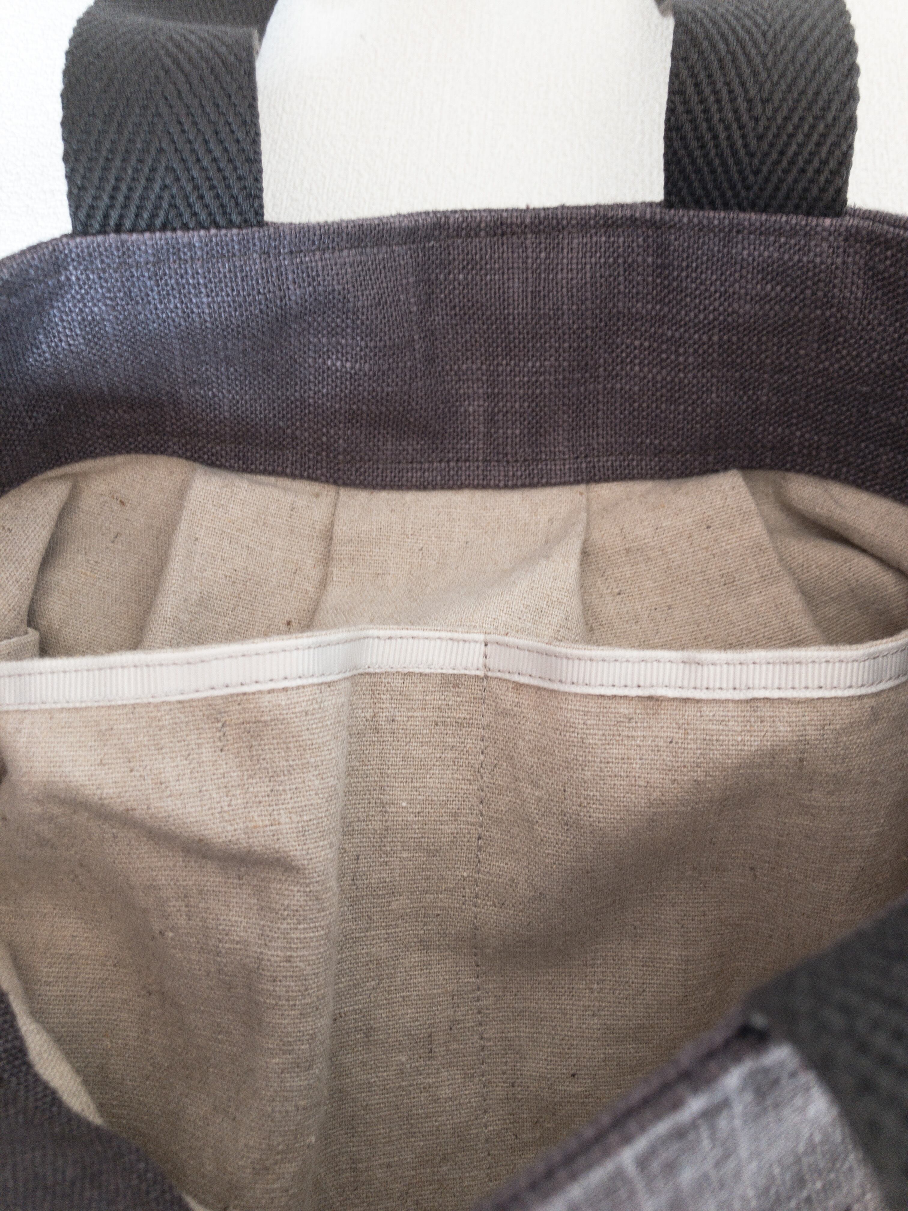 切り替え口布の麻生地はバックの布と相性ピッタリです。