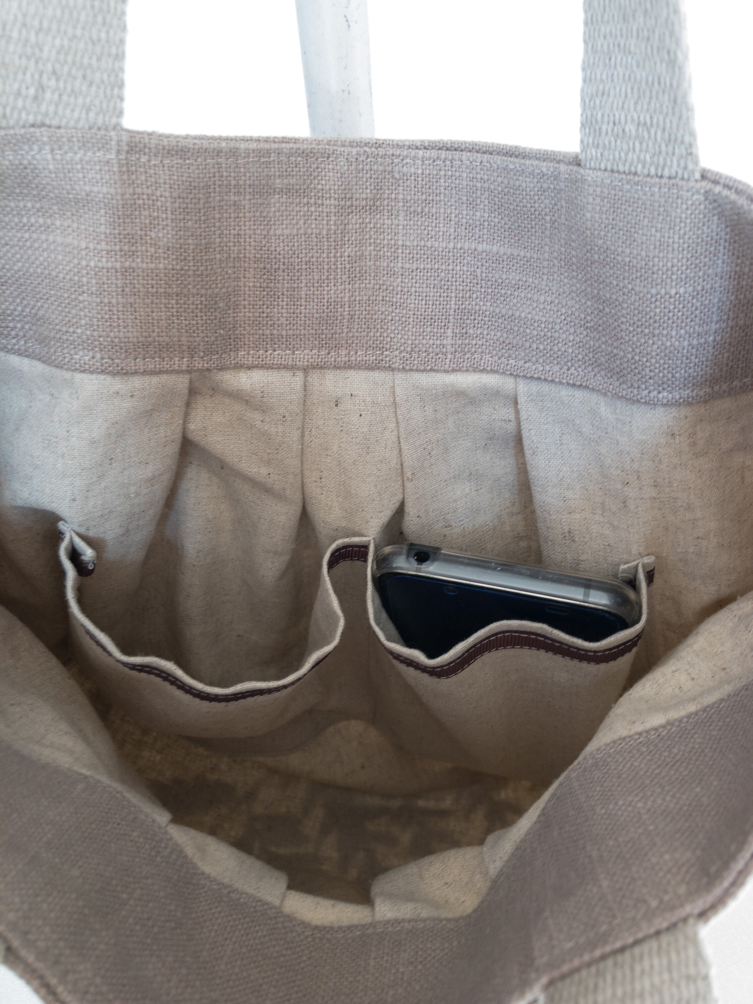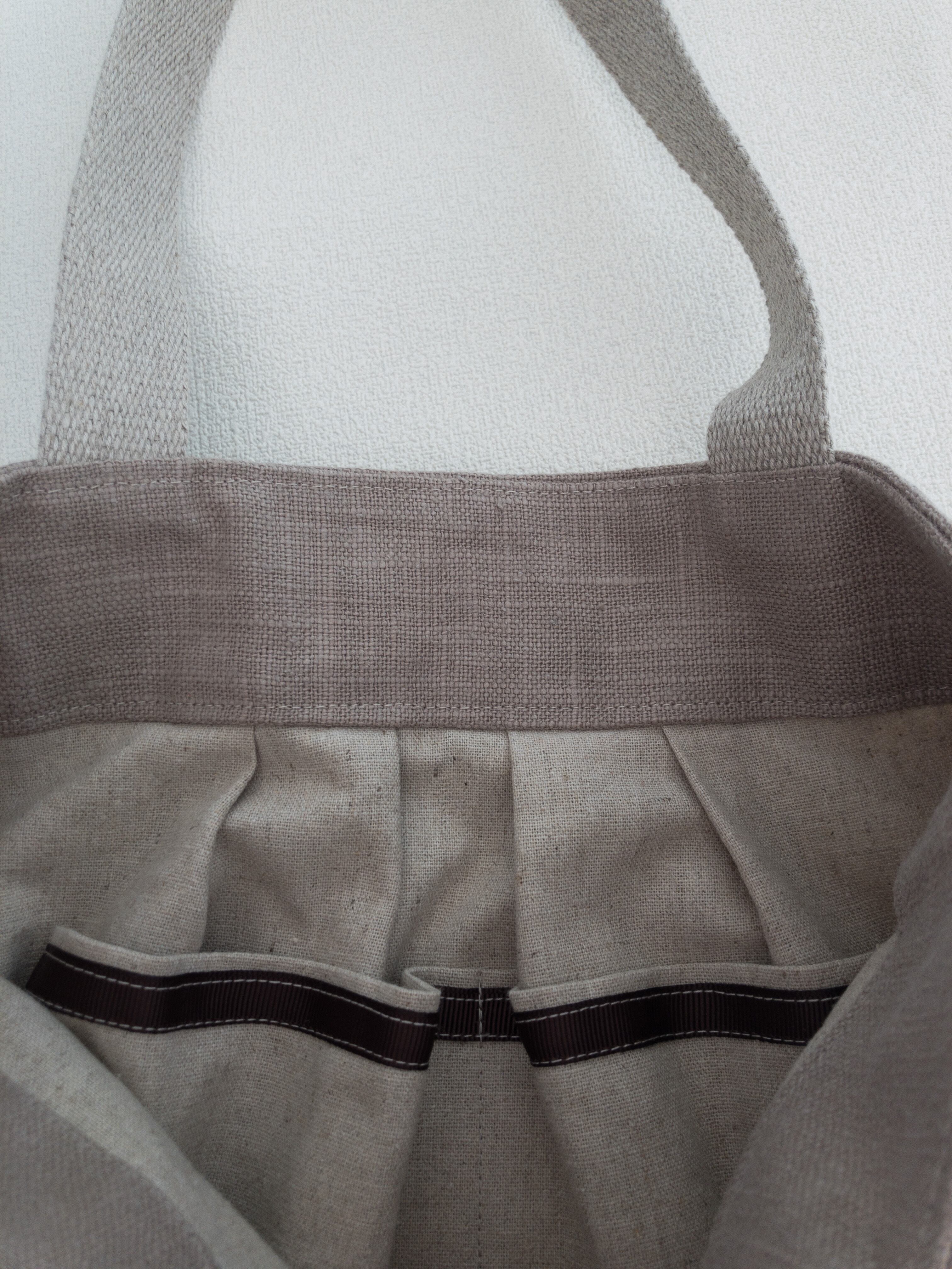 ポケット口にはリボンテープを縫い付けてあるので、小物の出し入れ時ポケットの位置が一目瞭然で使い易いと思います。