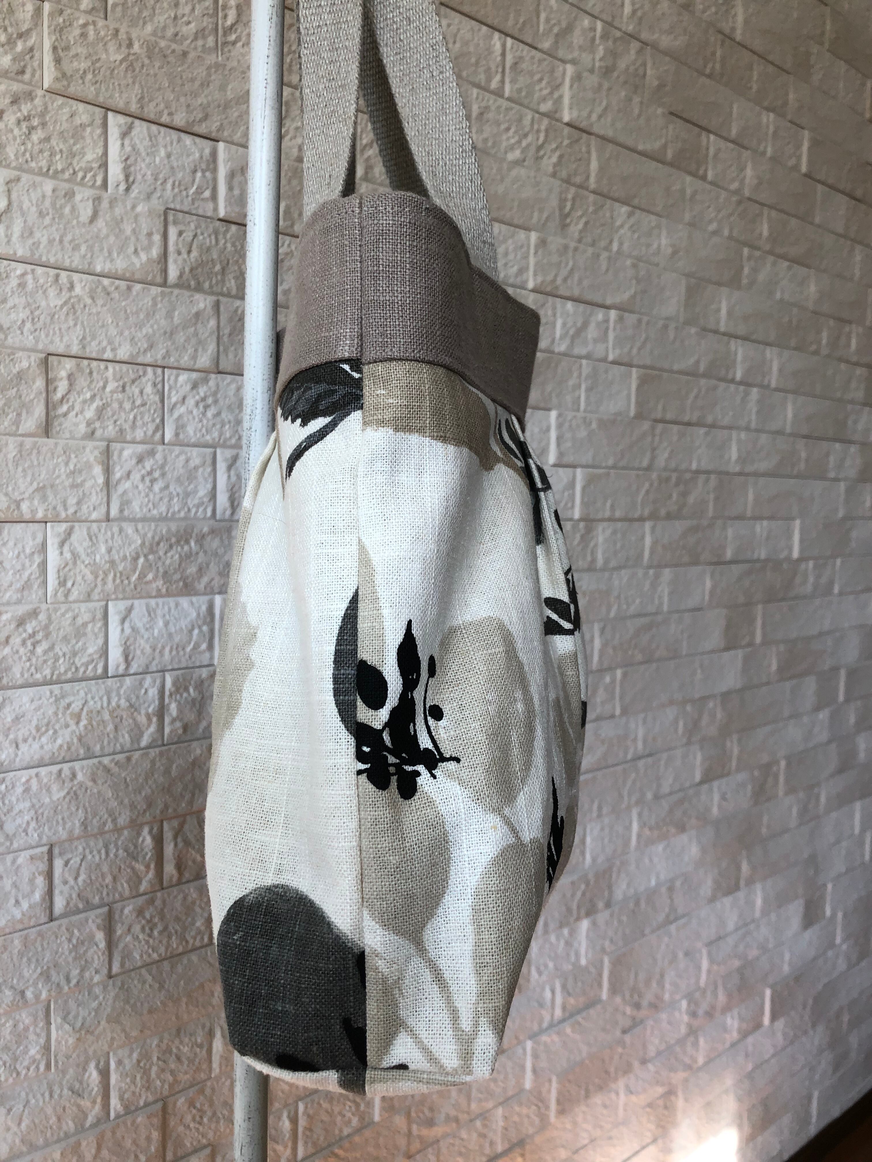 持ち手と口布を同じ布にしてあるので、落ち着いた雰囲気でお使いになれると思います。