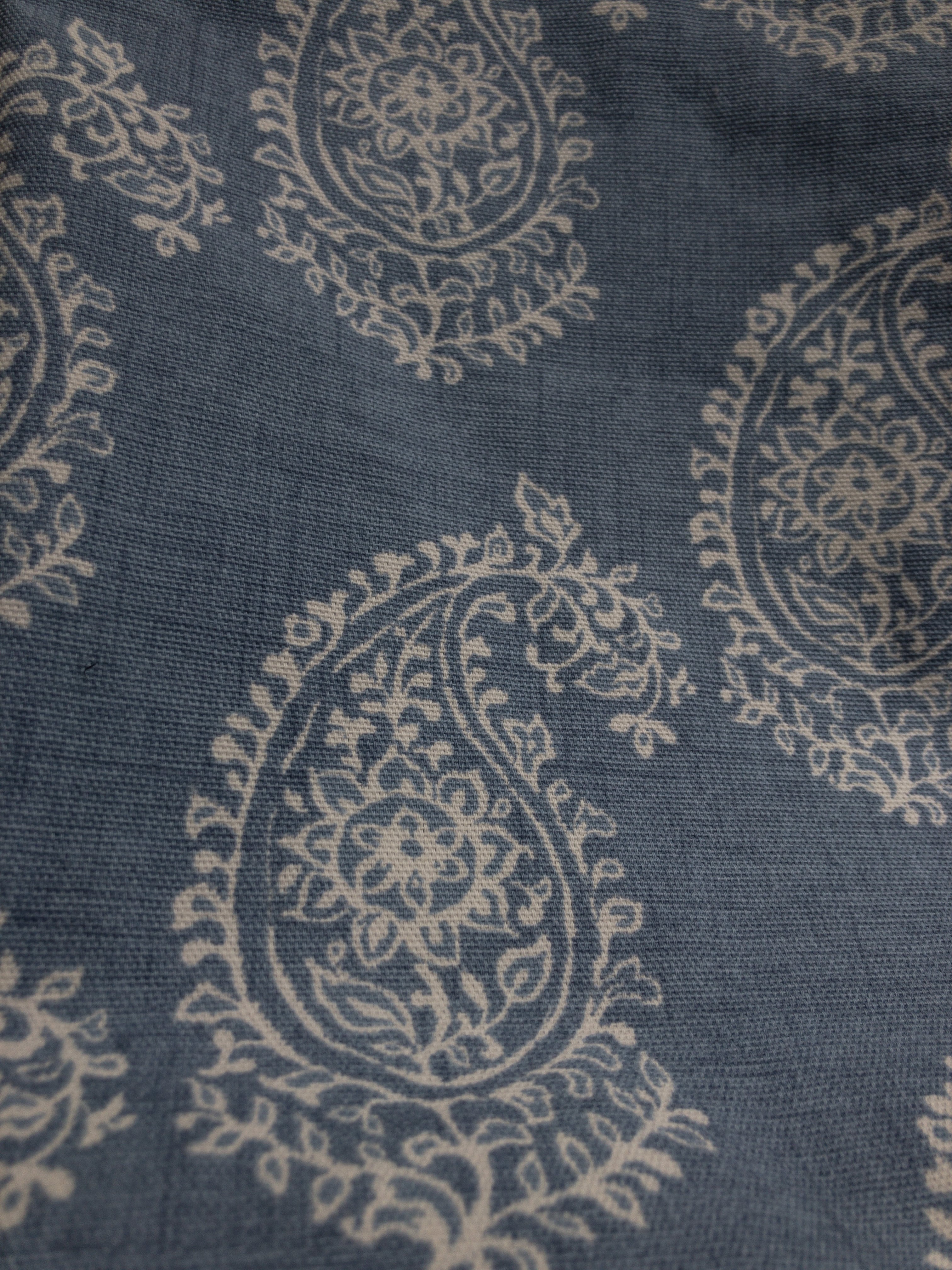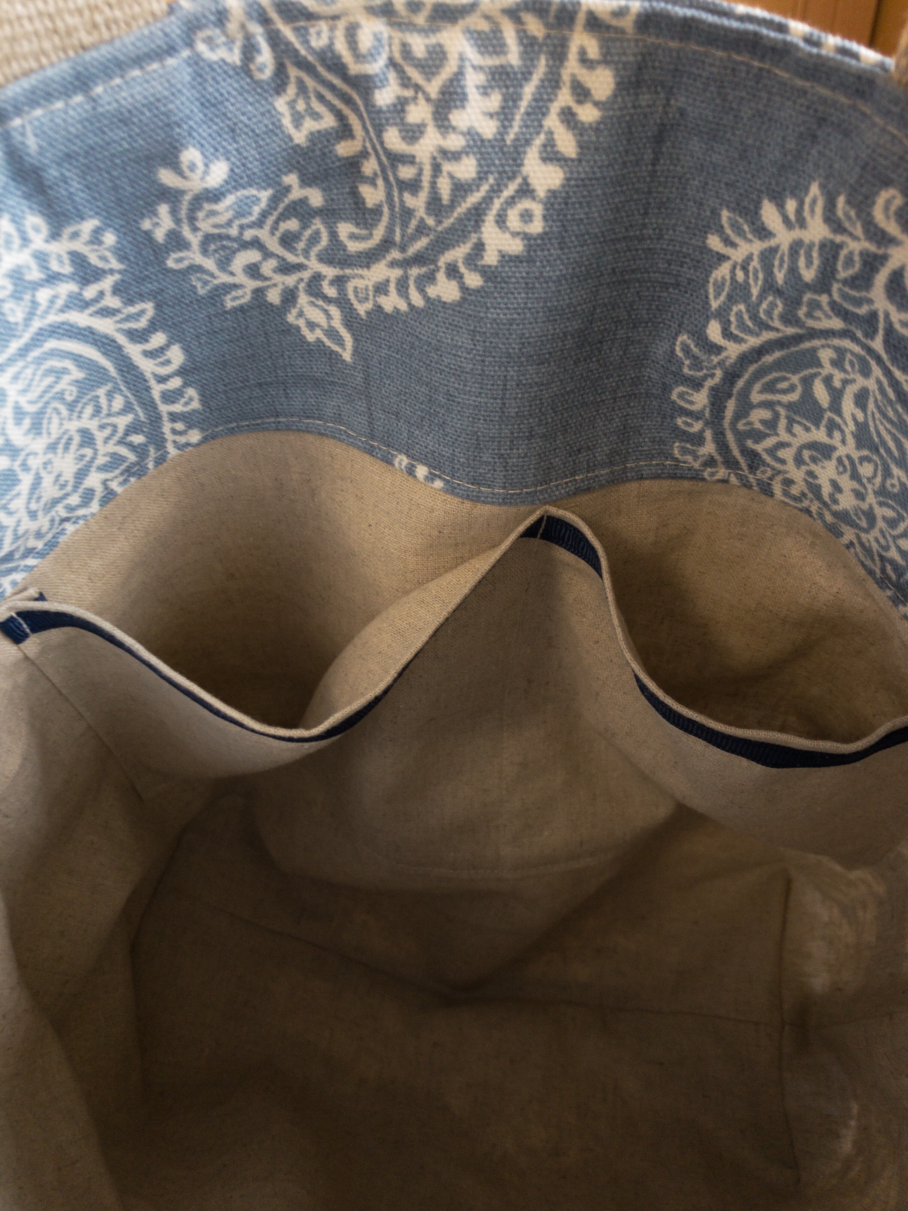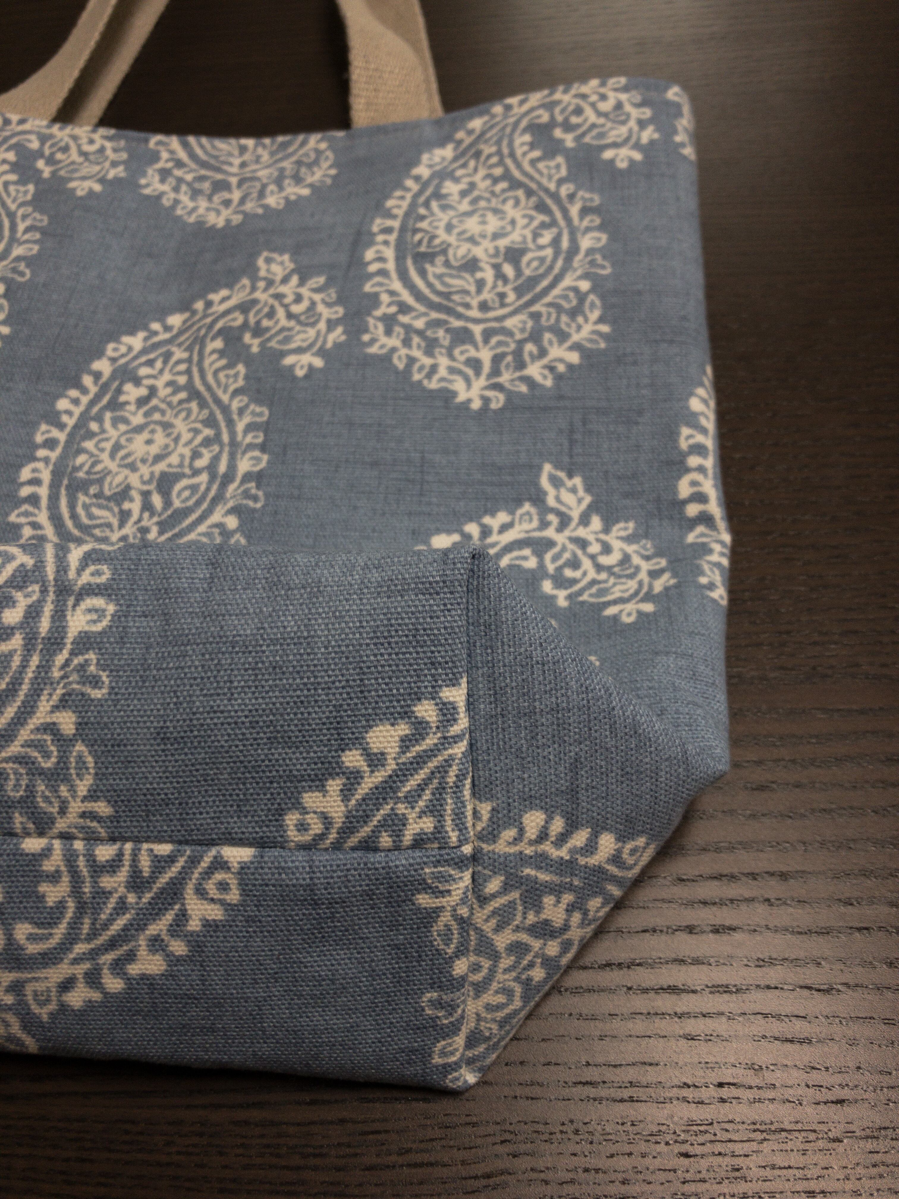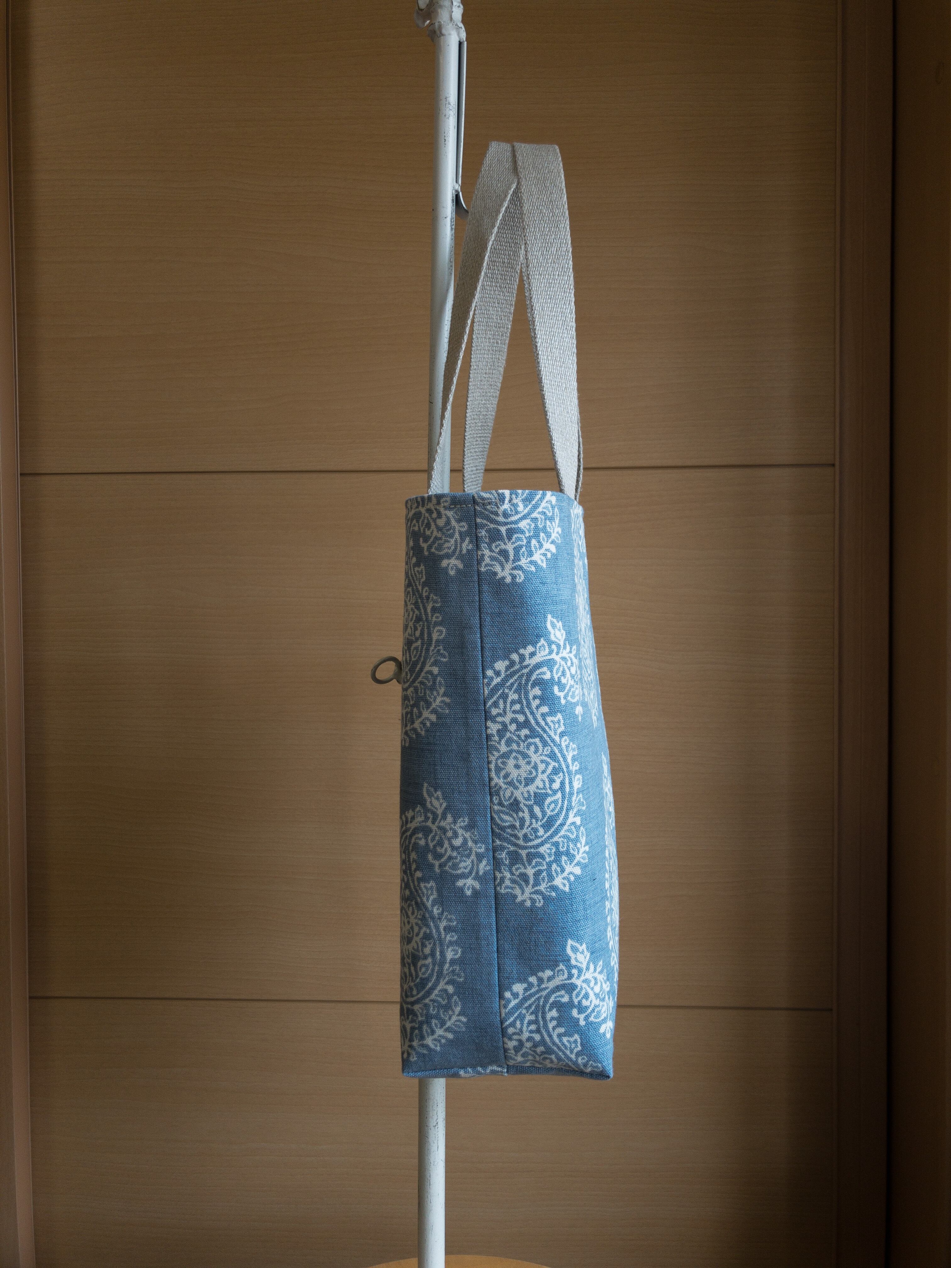 ブルー地に白のペイズリー柄のプリント地でとても爽やかな印象のバックです。