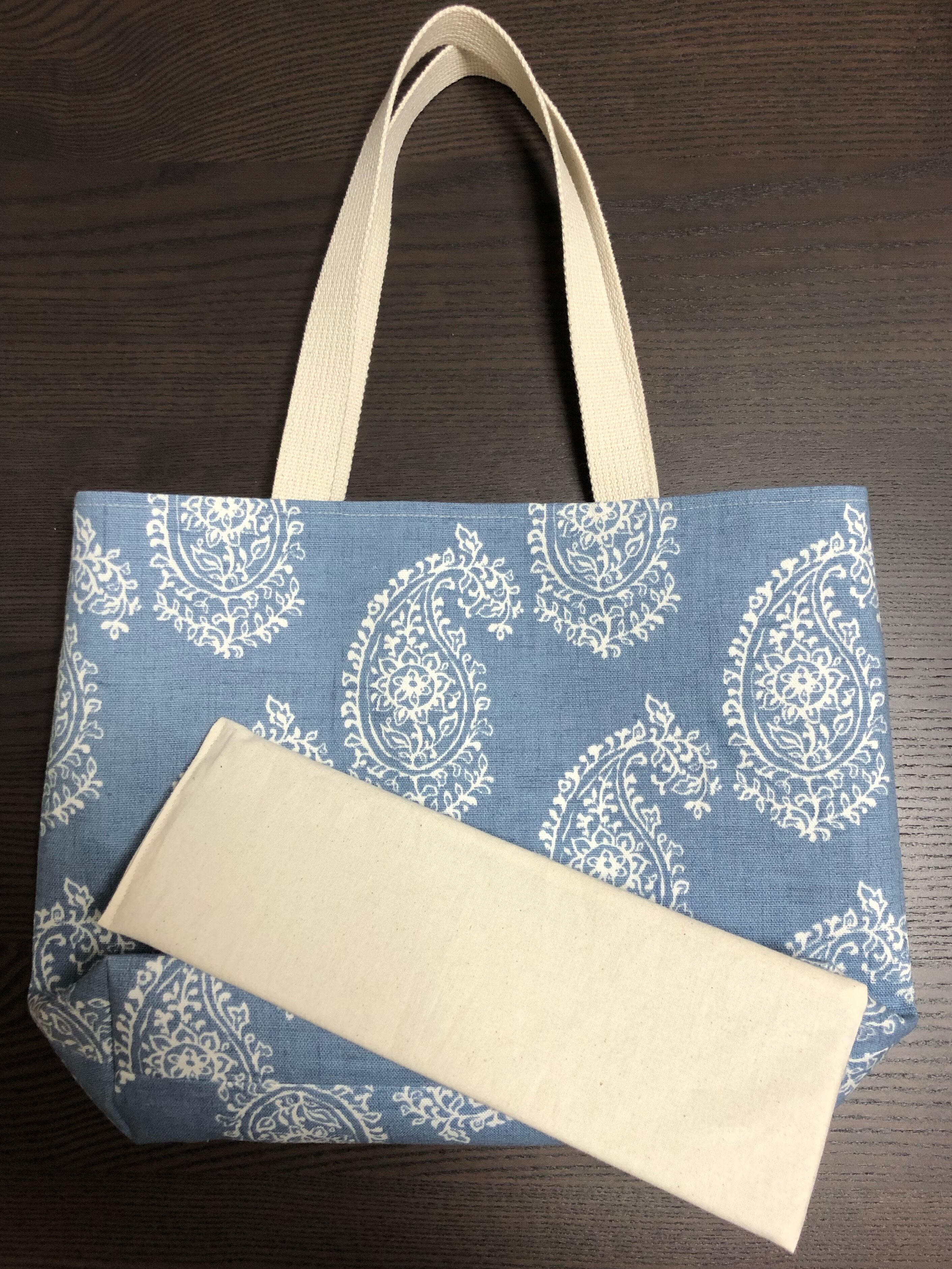 クラーククラークのしっかりした生地です。さらに接着芯を張ったのでしっかりしたバックになったと思います。