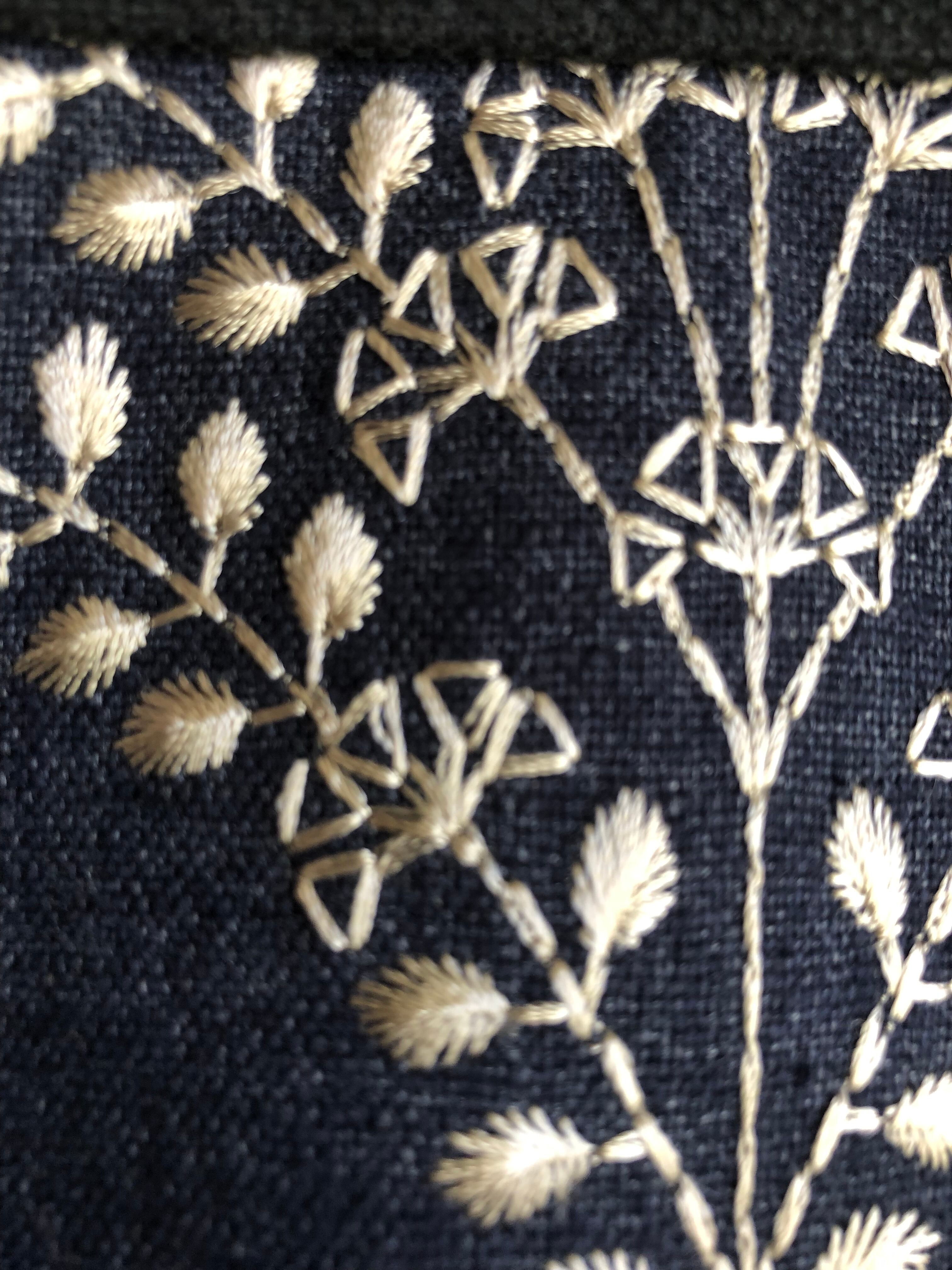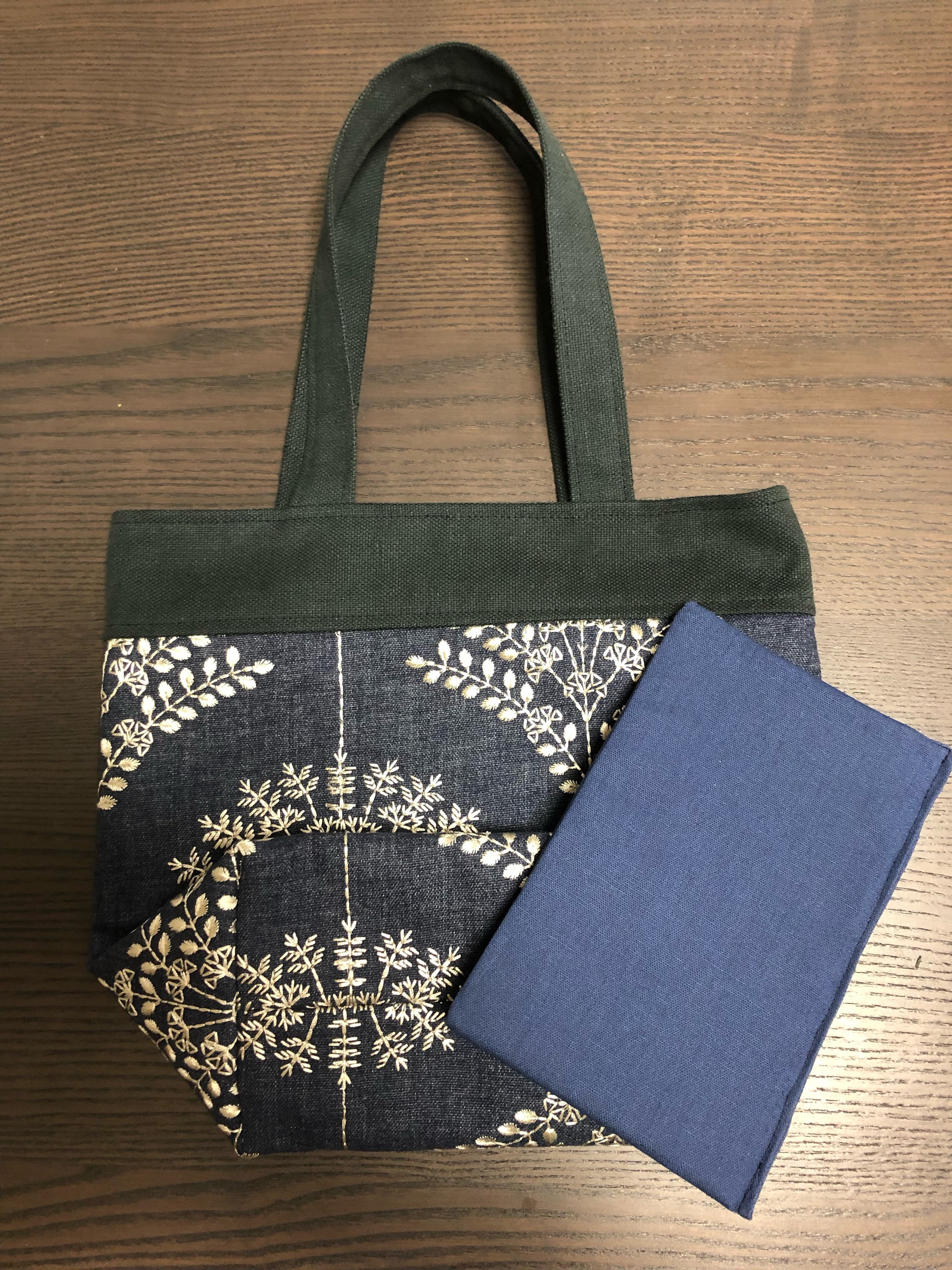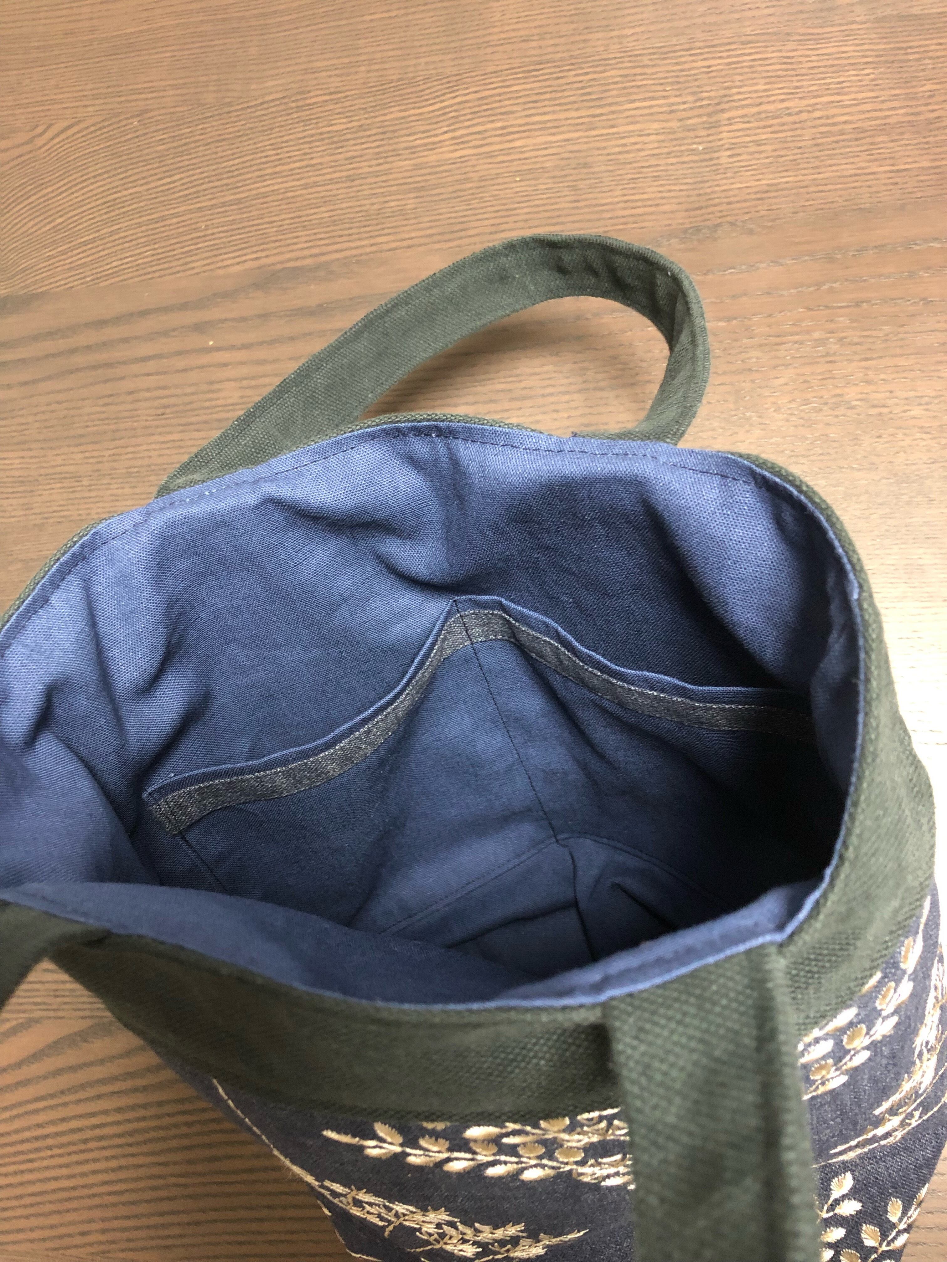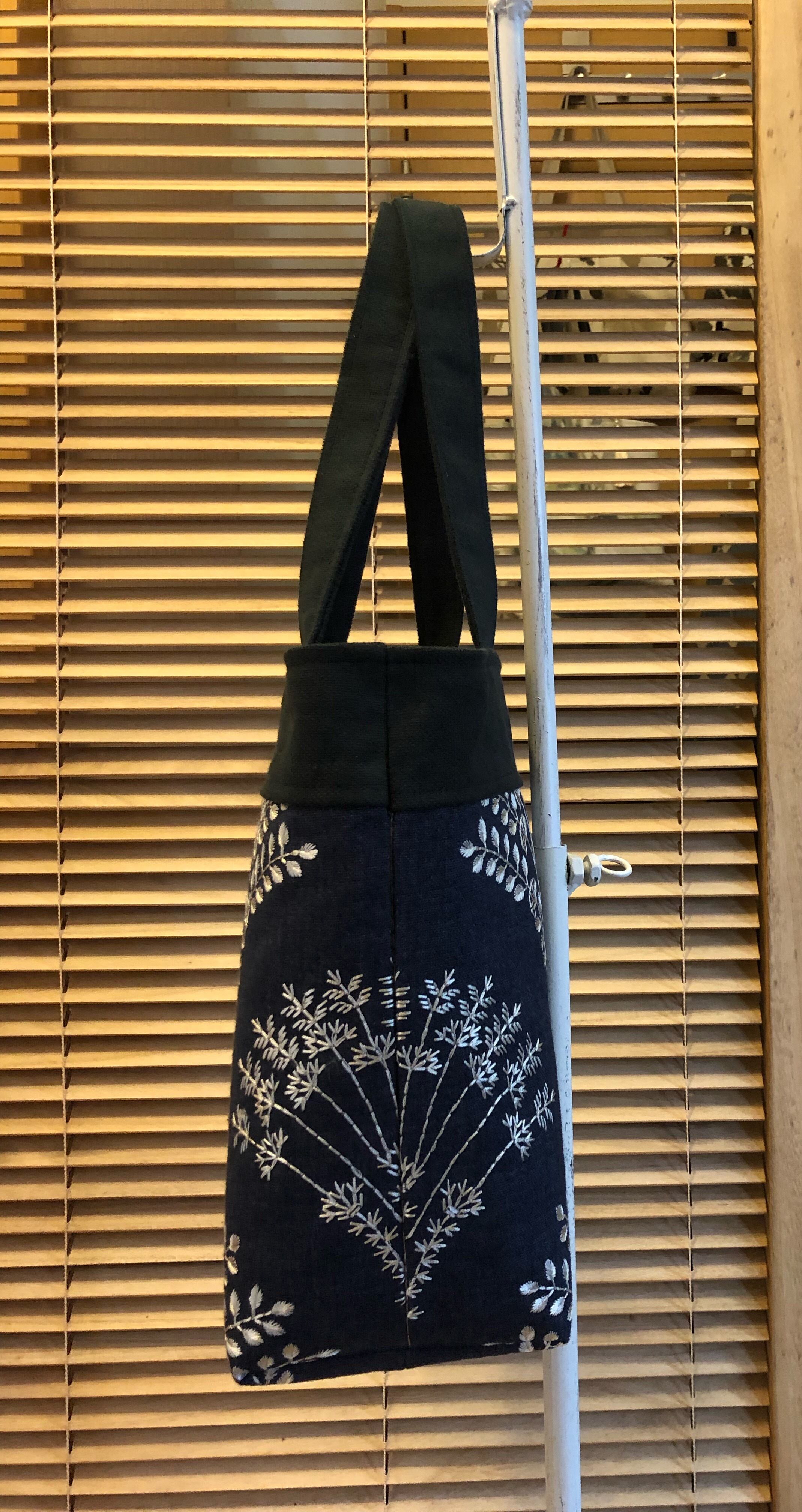 紺地に白刺繍のトートバッグ