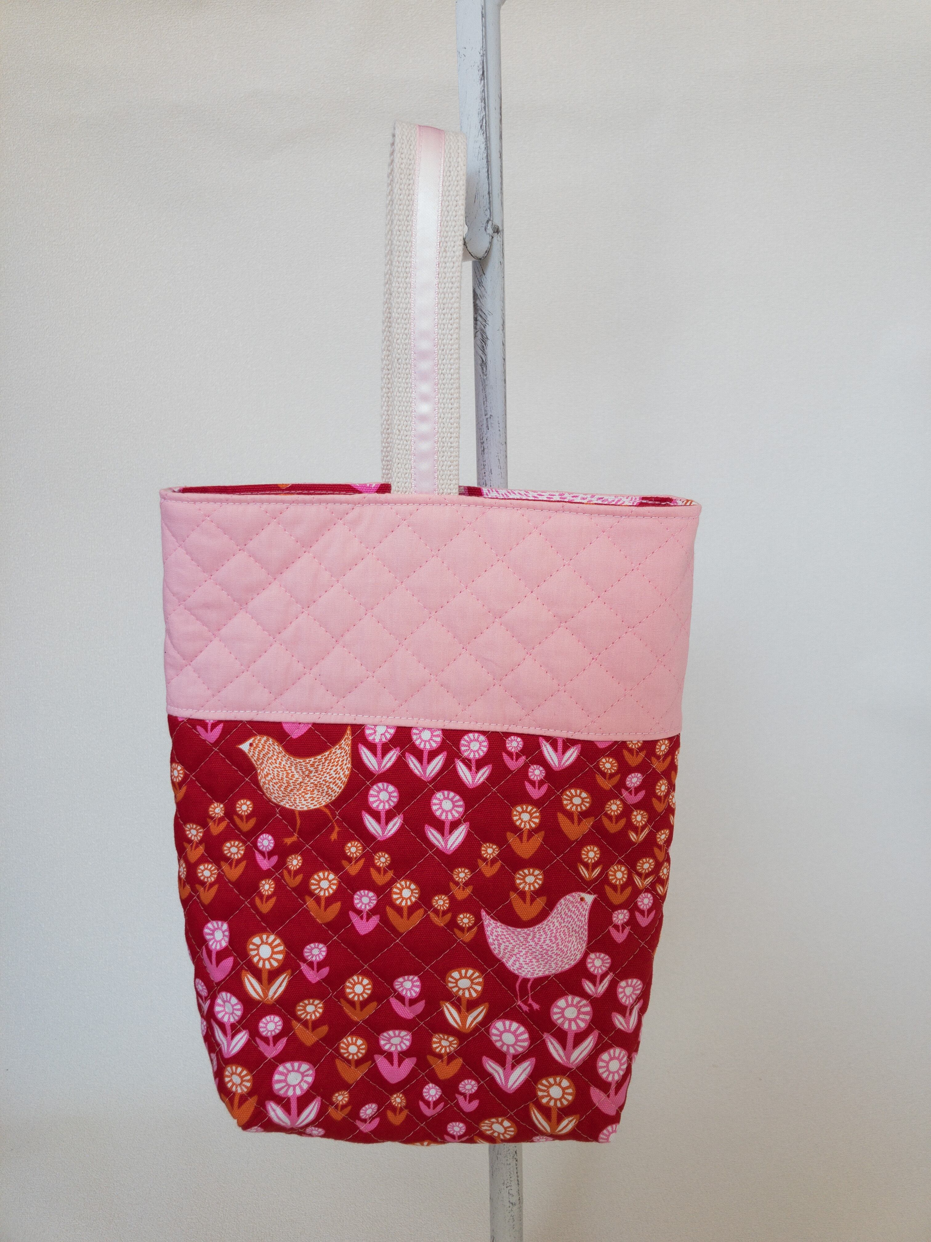 更に持ち手にピンクのリボンテープを縫い付けキュートに仕上げました。