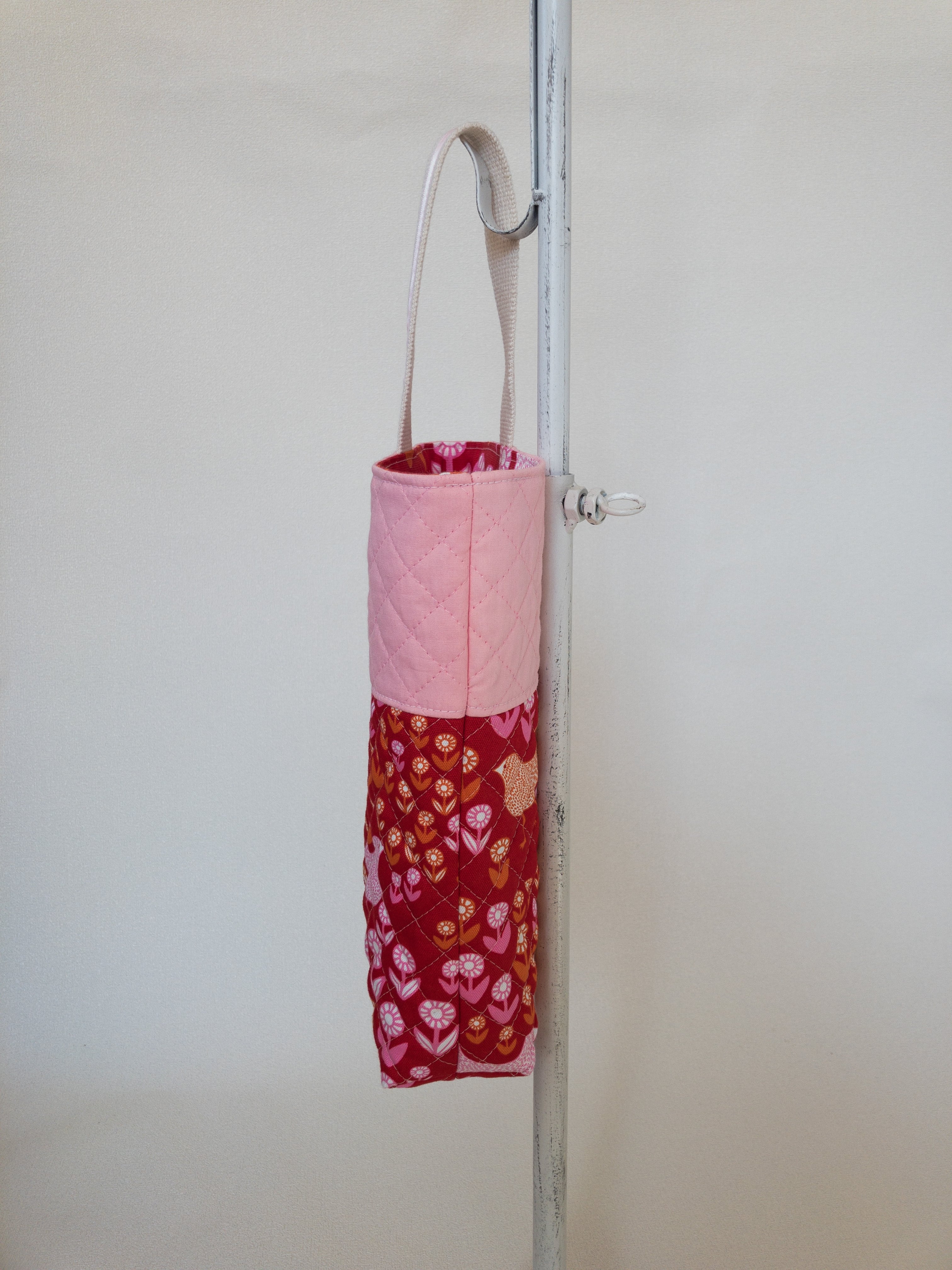 コップ袋は小さいサイズなので上部はキュッと閉めやすくする為薄い布で切り替えて作ってあります。
