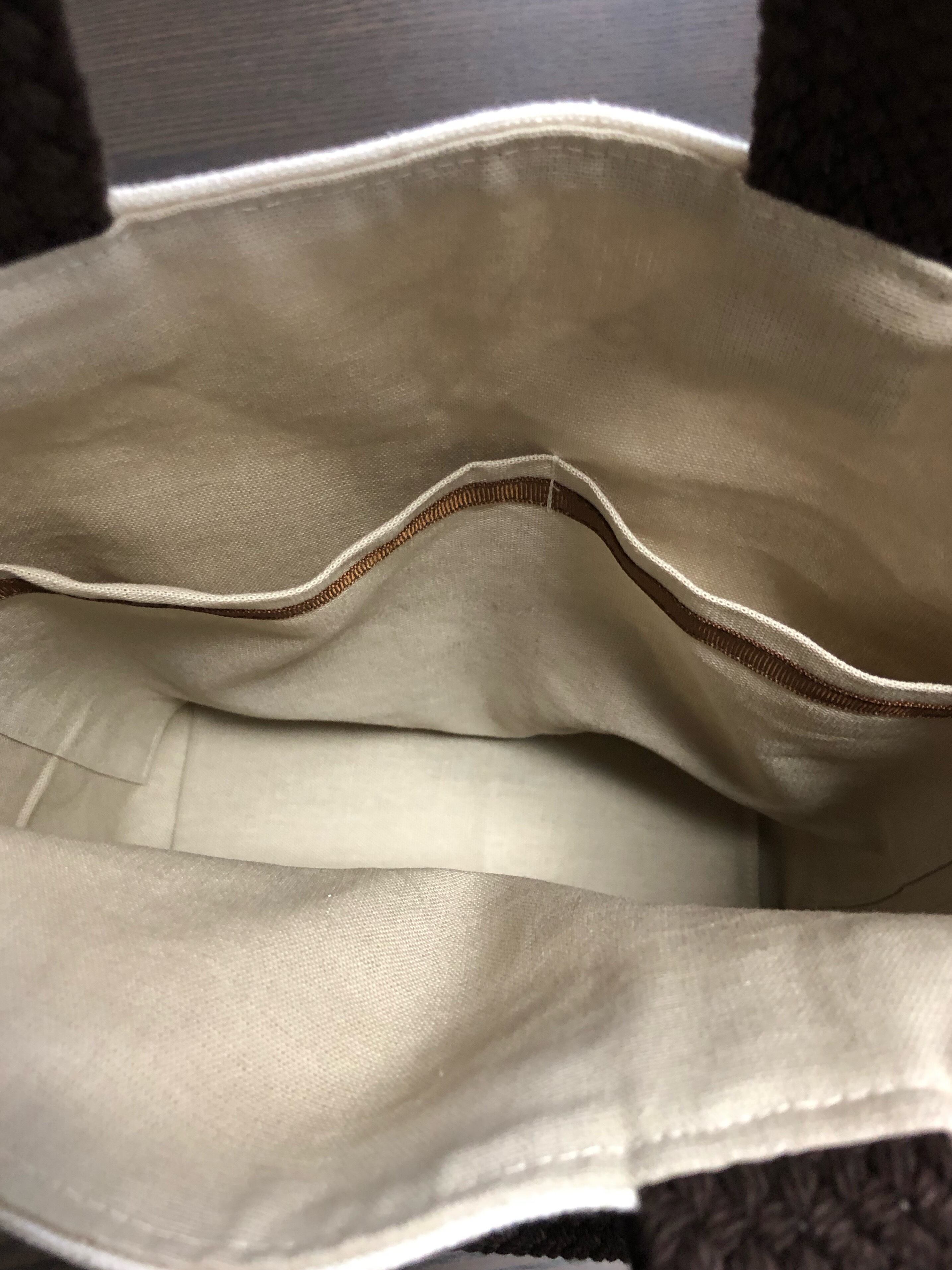 持ち手は茶色の幅広の編み込みの物を使いました。