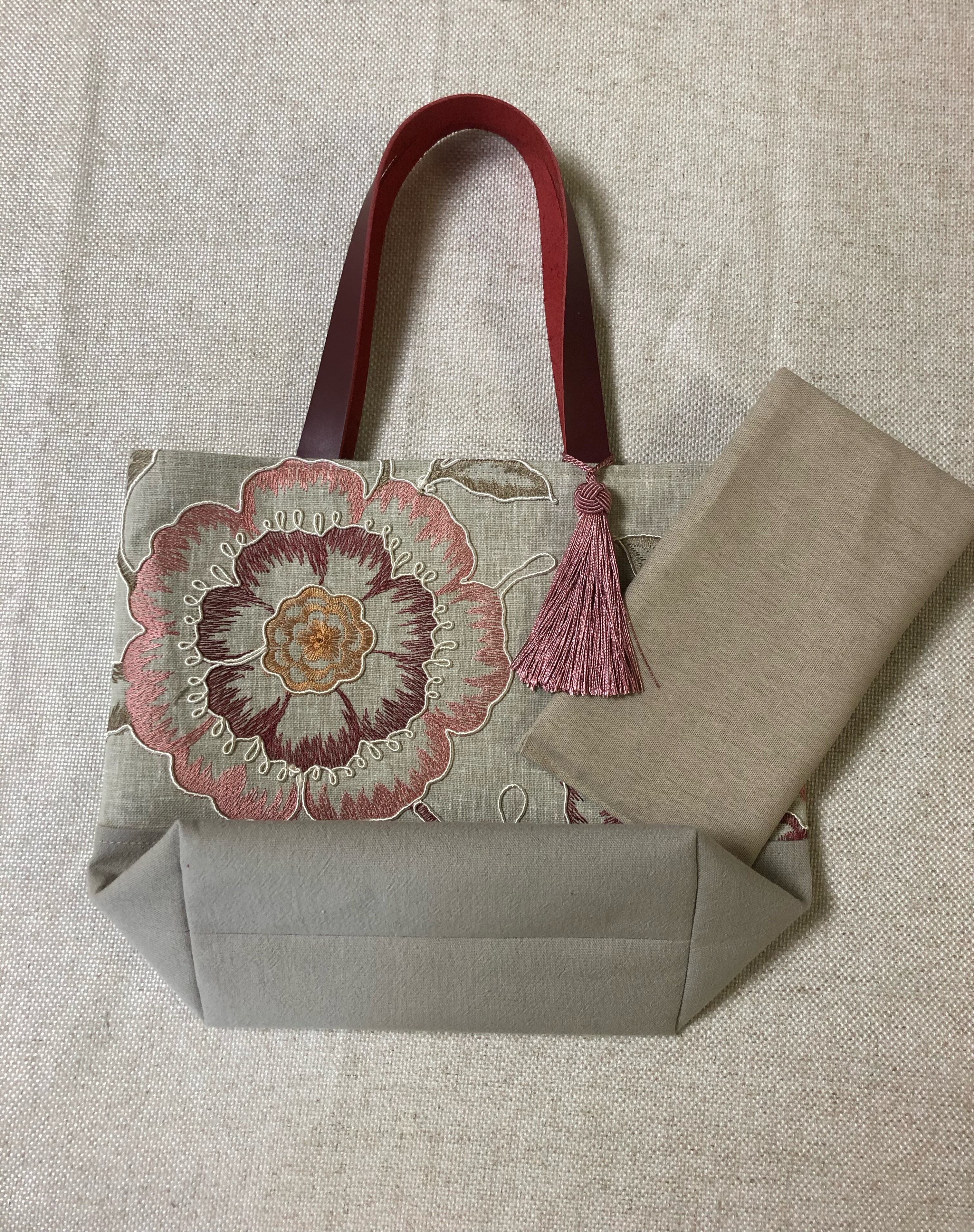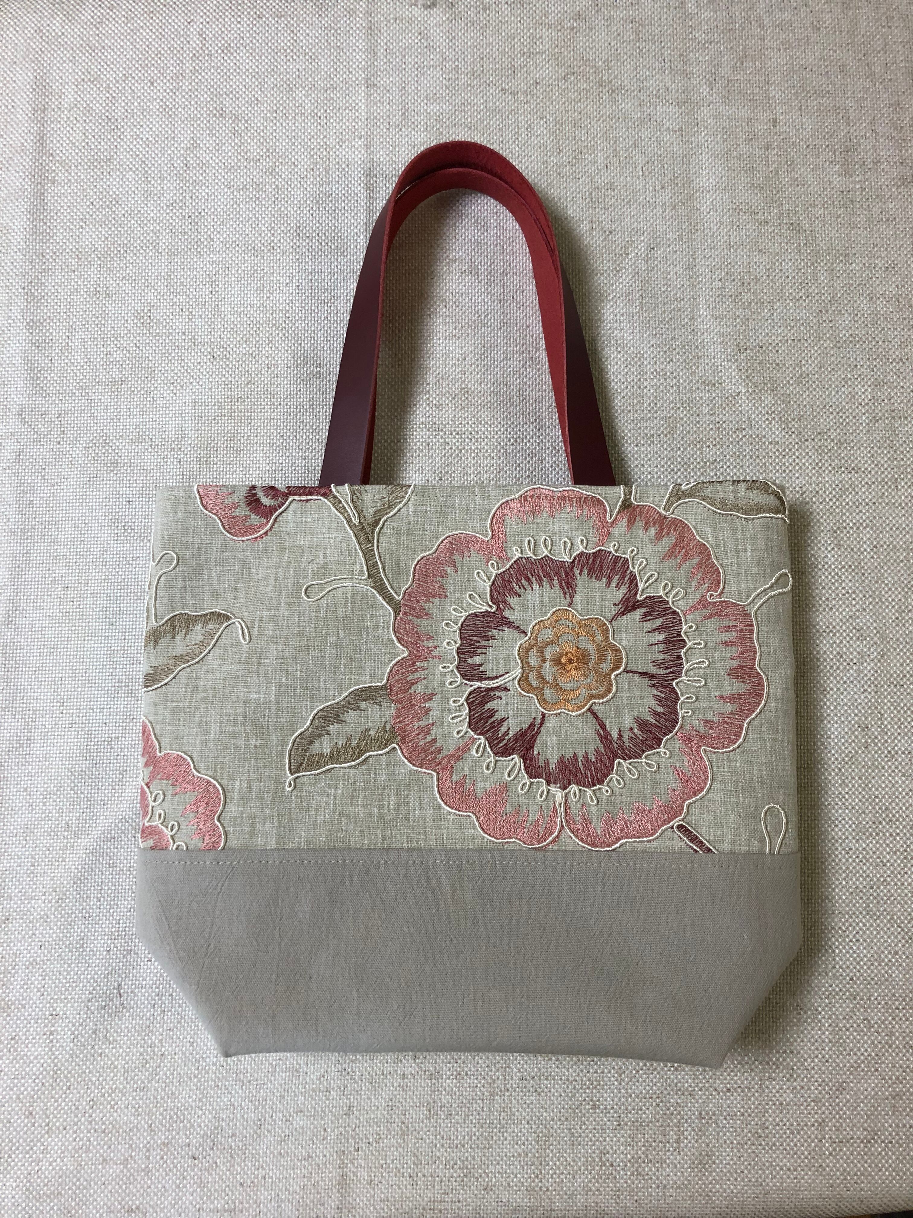 大花コード刺繍のツートントートバッグ