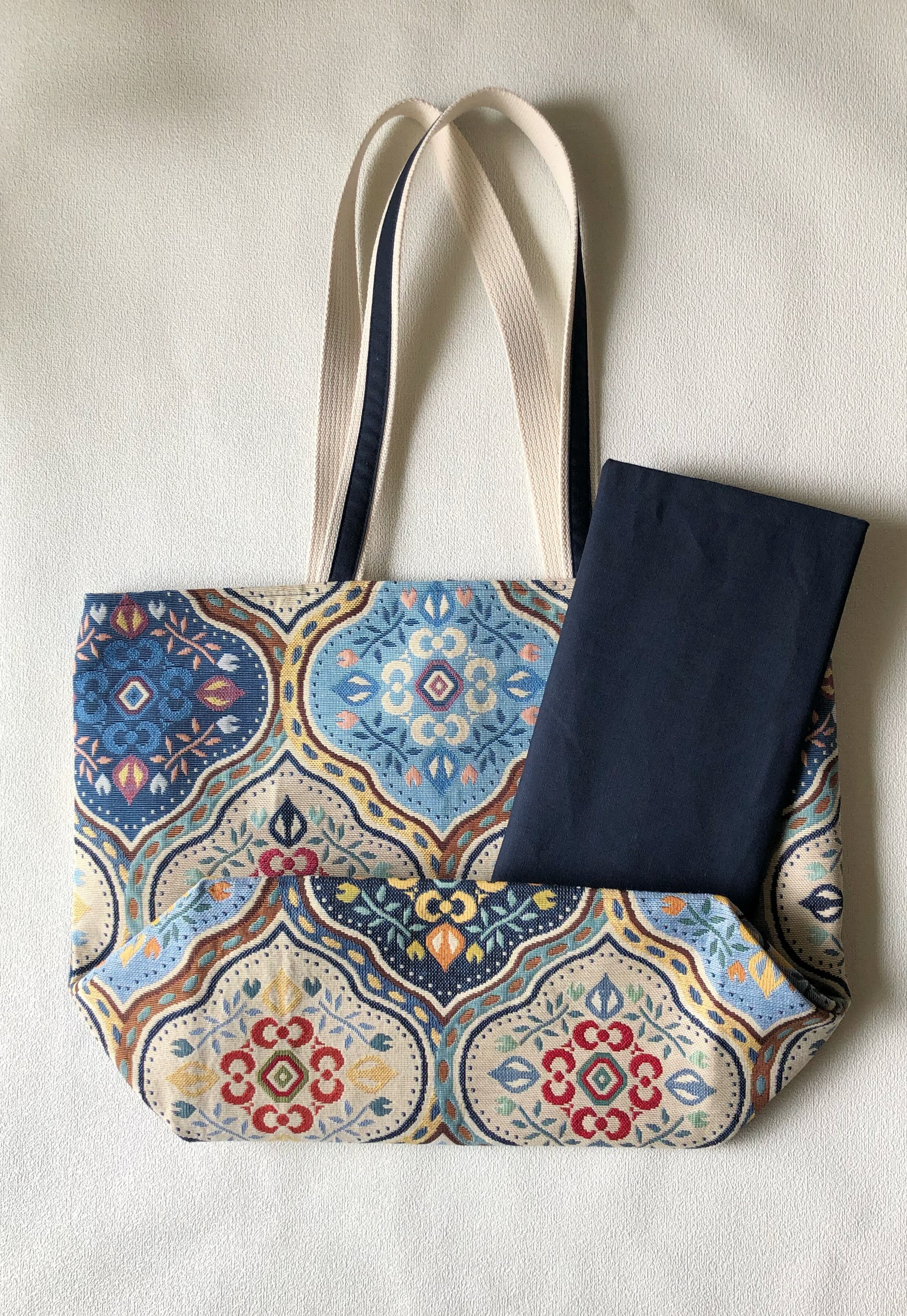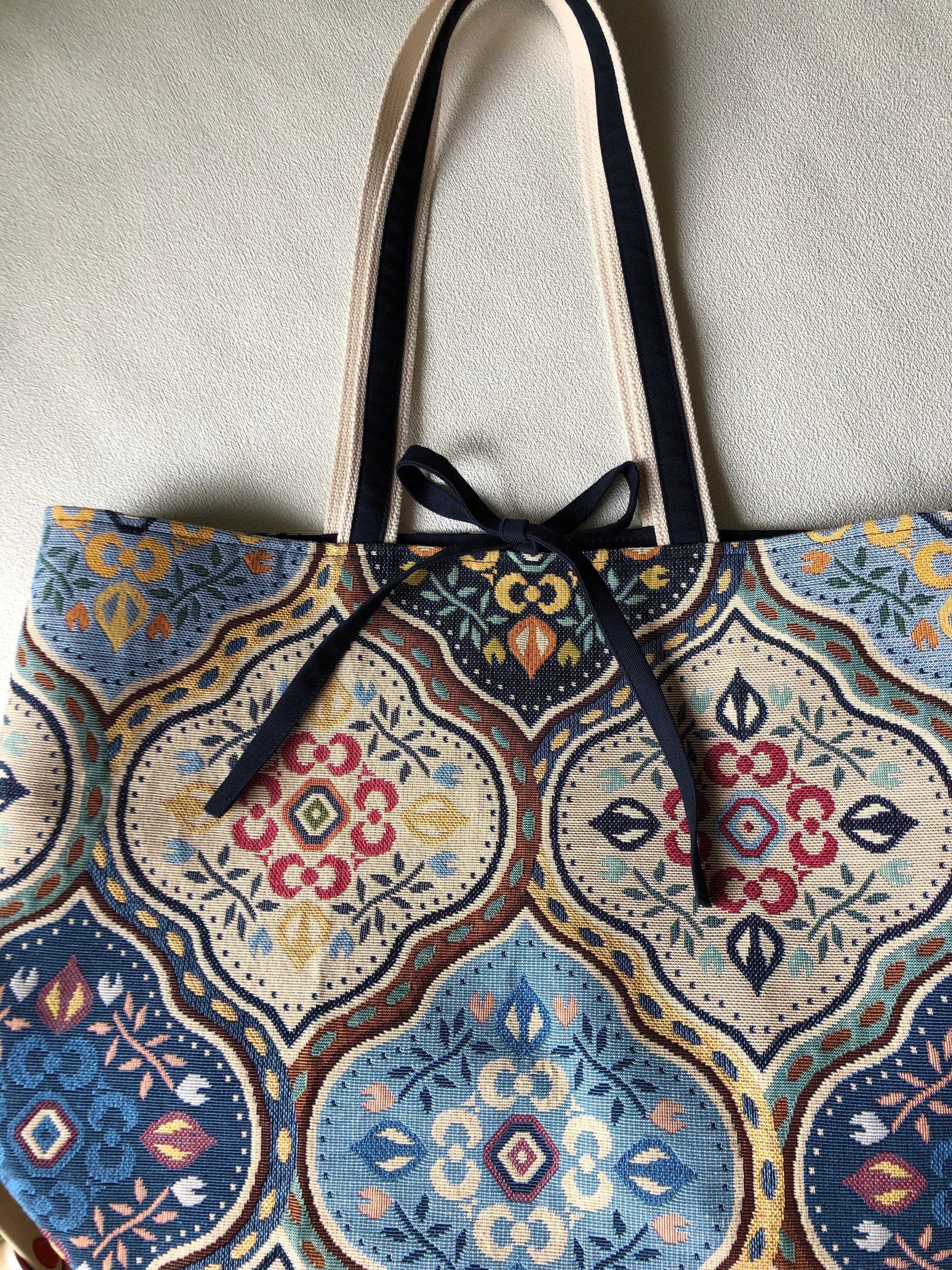 その共布でテープを作り持ち手に縫い付け長さは60センチあるので持ったまま肩にスムーズに掛けられ使い易いです。