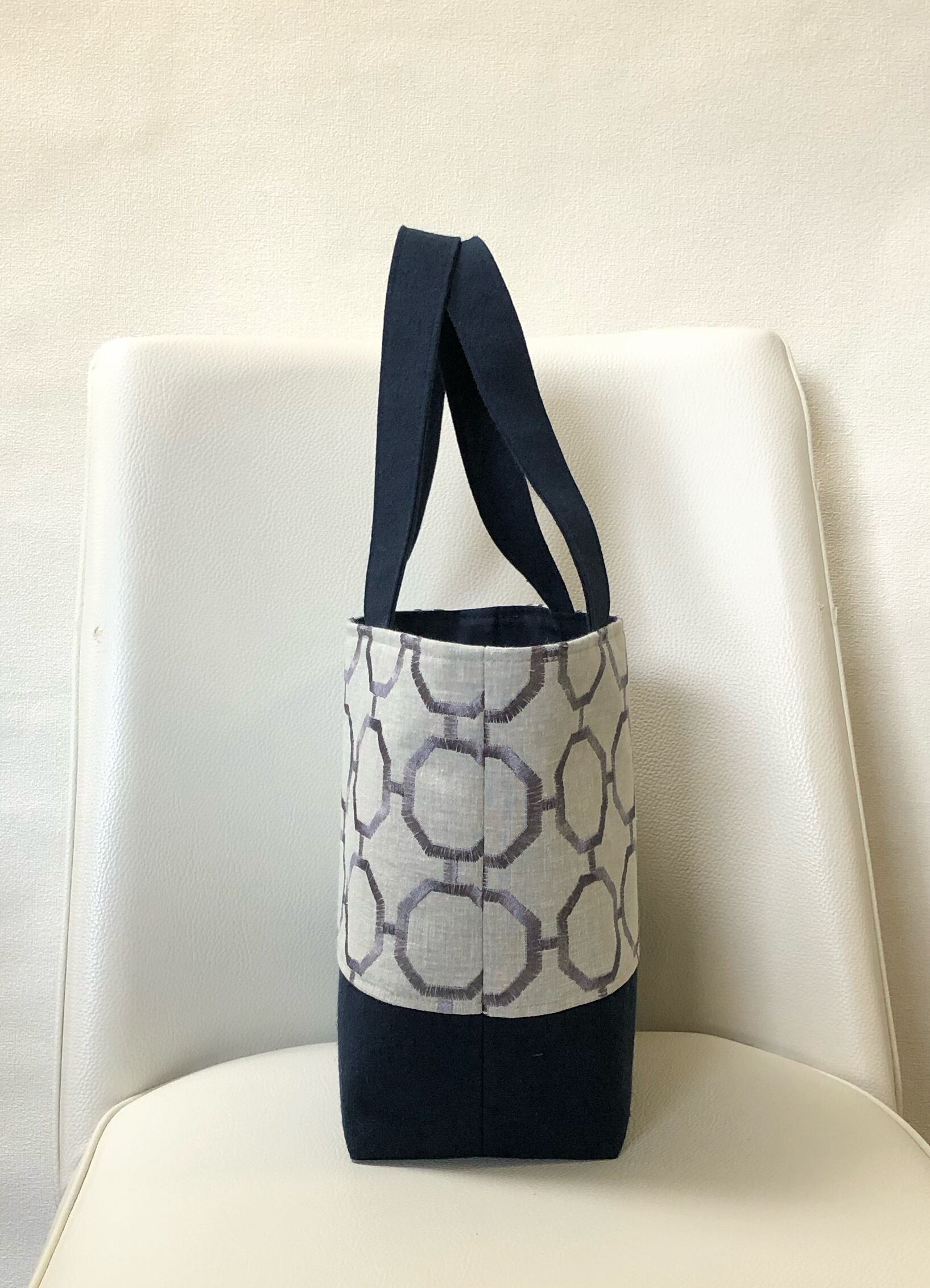 グレー系八角形刺繍のトートバッグ