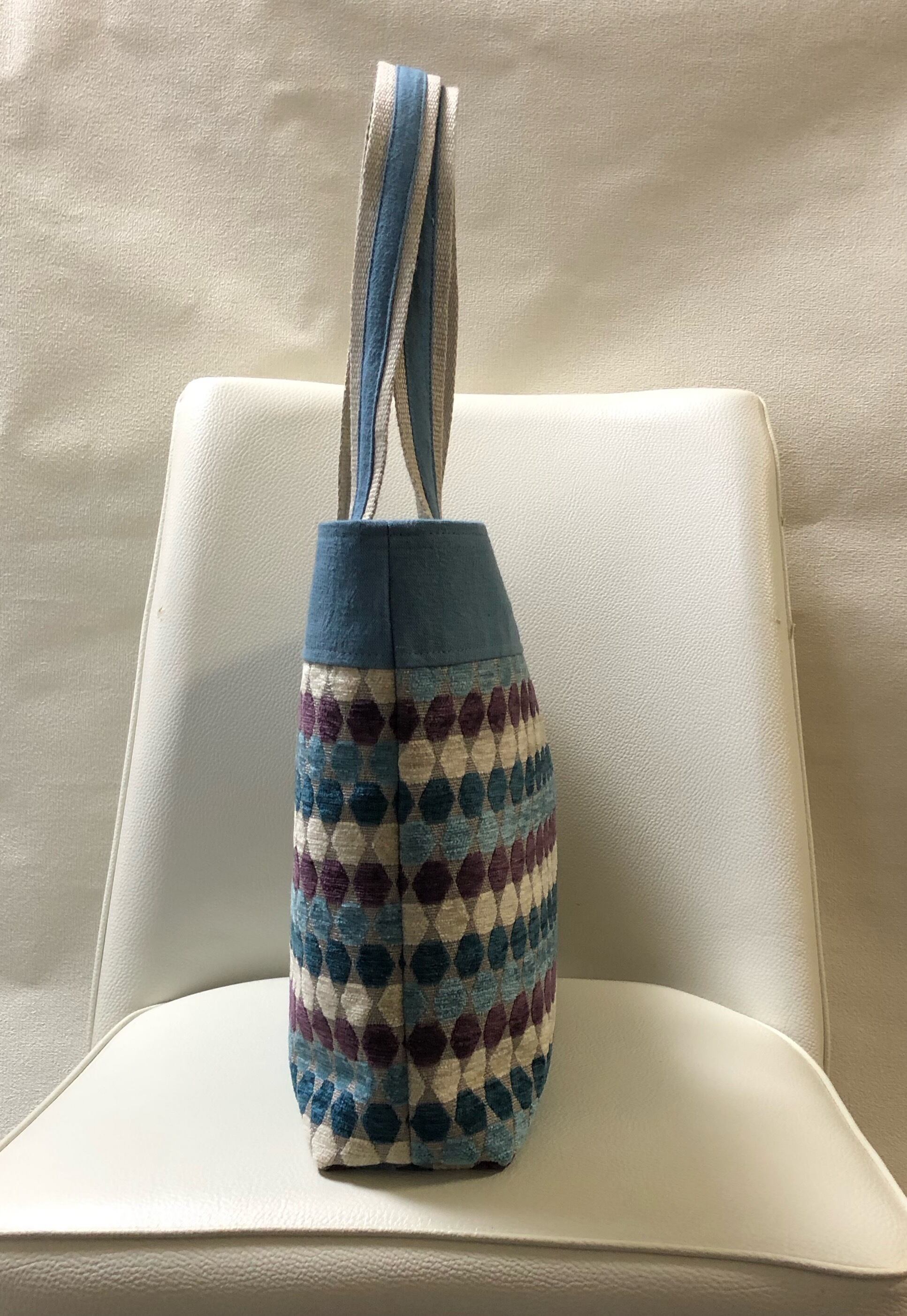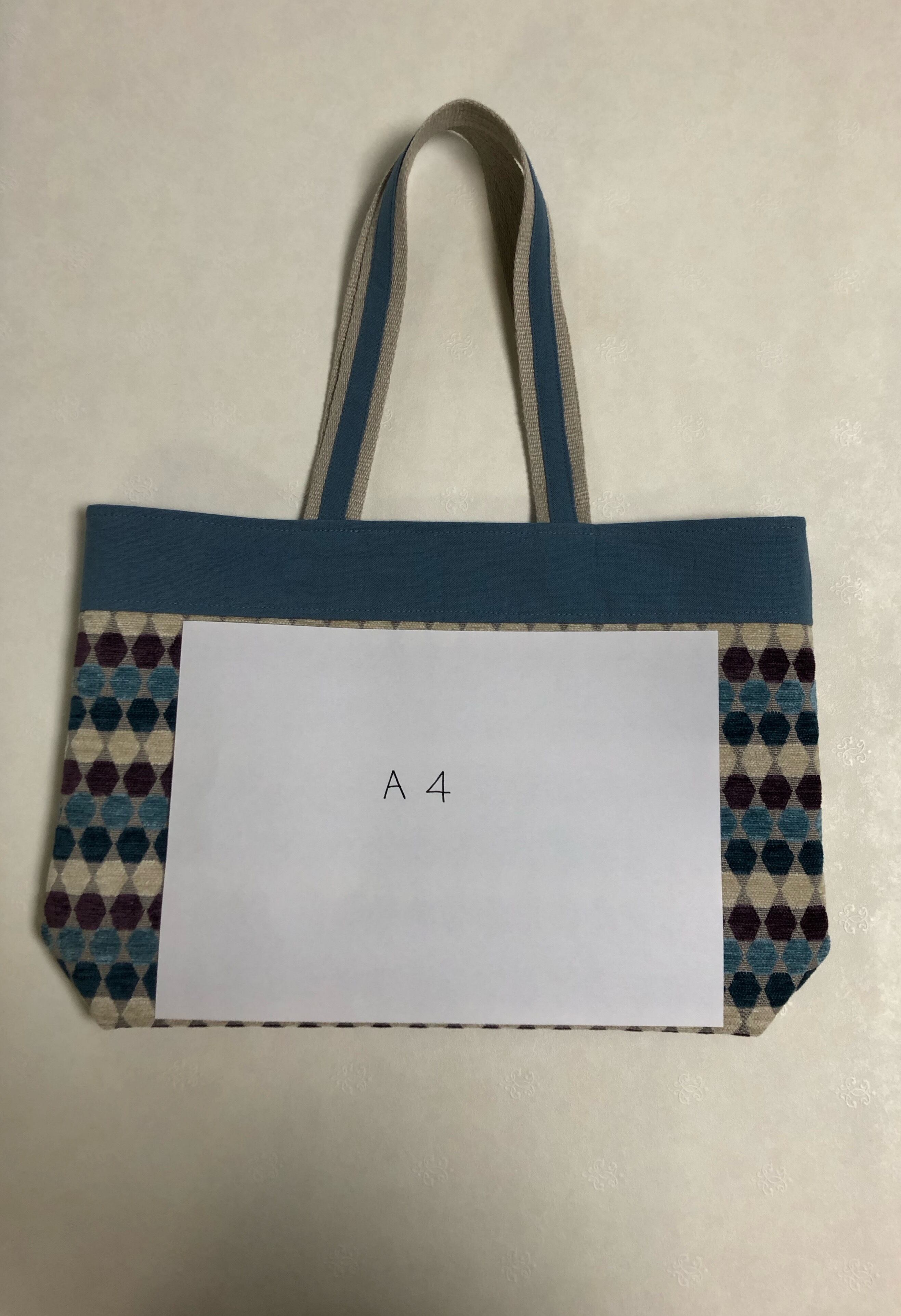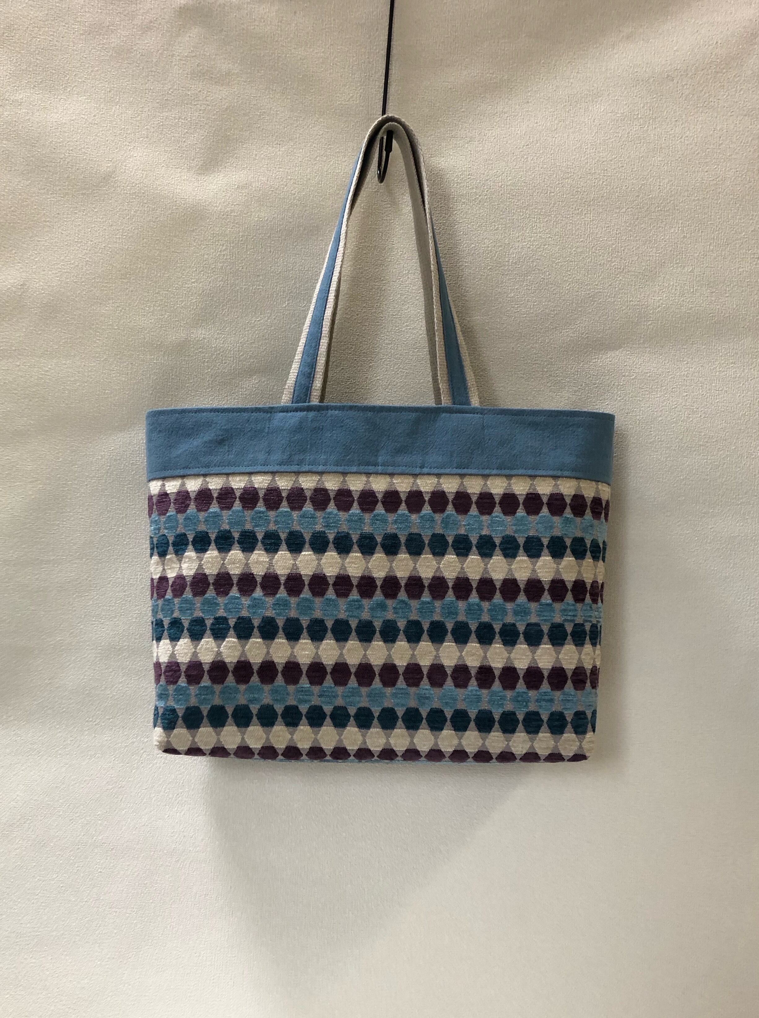 ジャガード織六角形の横長トートバック、A4スッポリサイズ