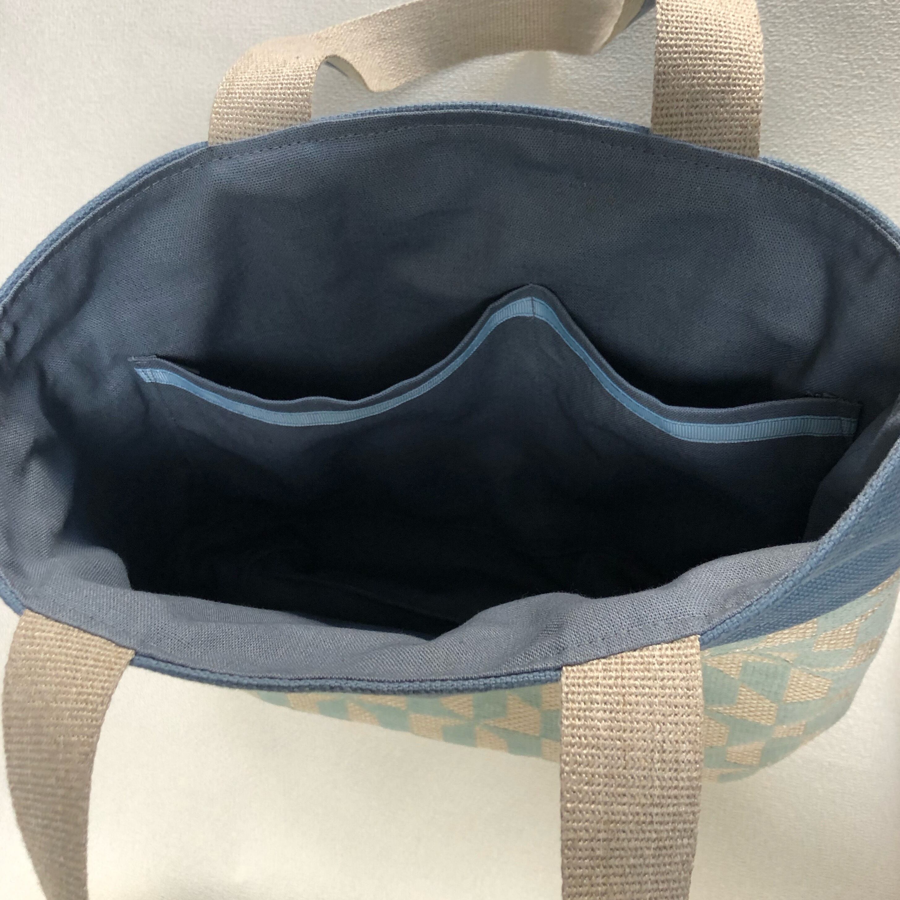 幾何学模様ジャガード織トートバッグは、緻密な幾何学模様が施されたイギリスの生地で、光沢もあり上品な印象でオシャレさを演出しています。