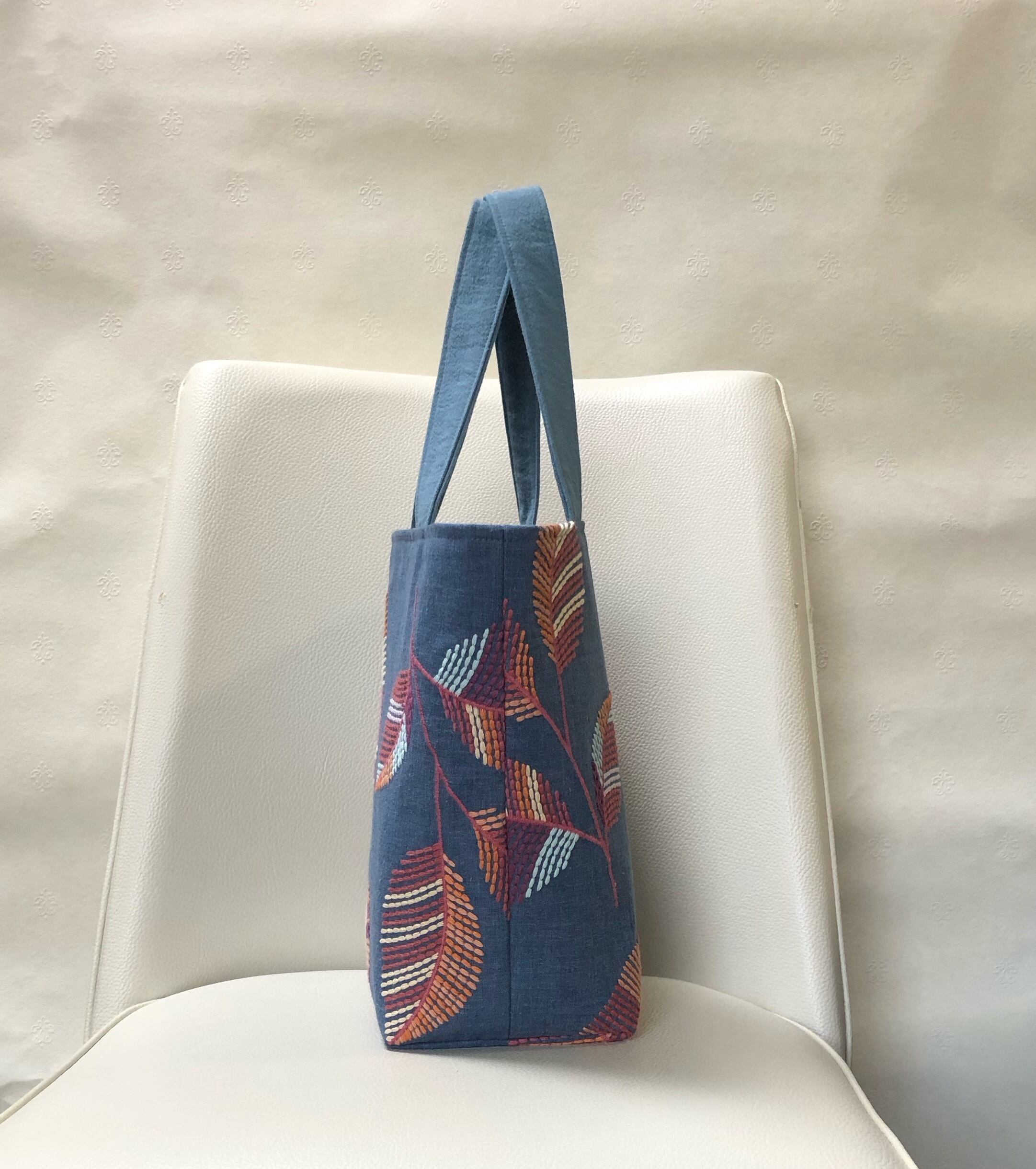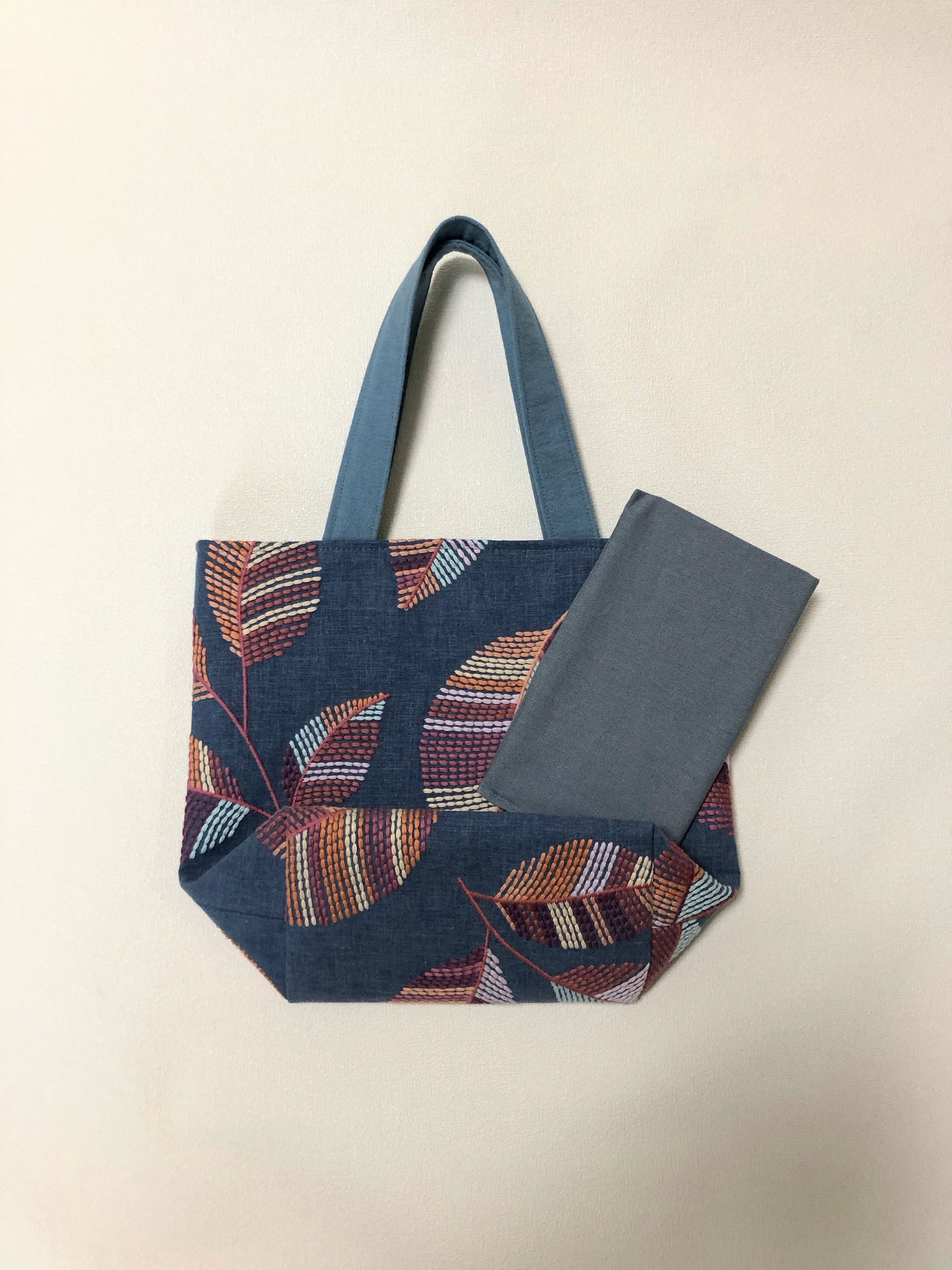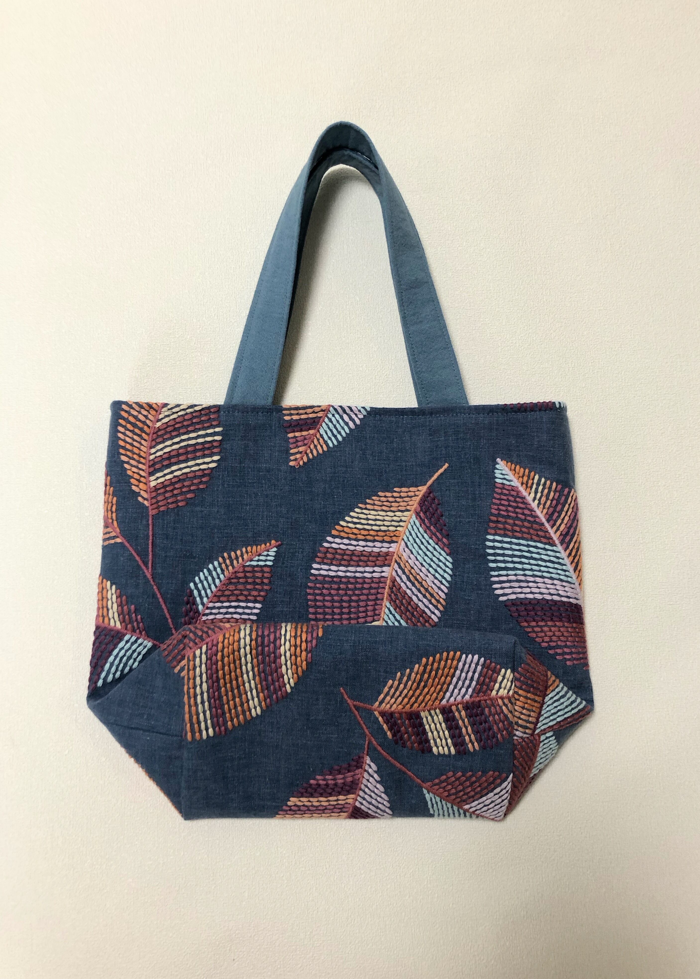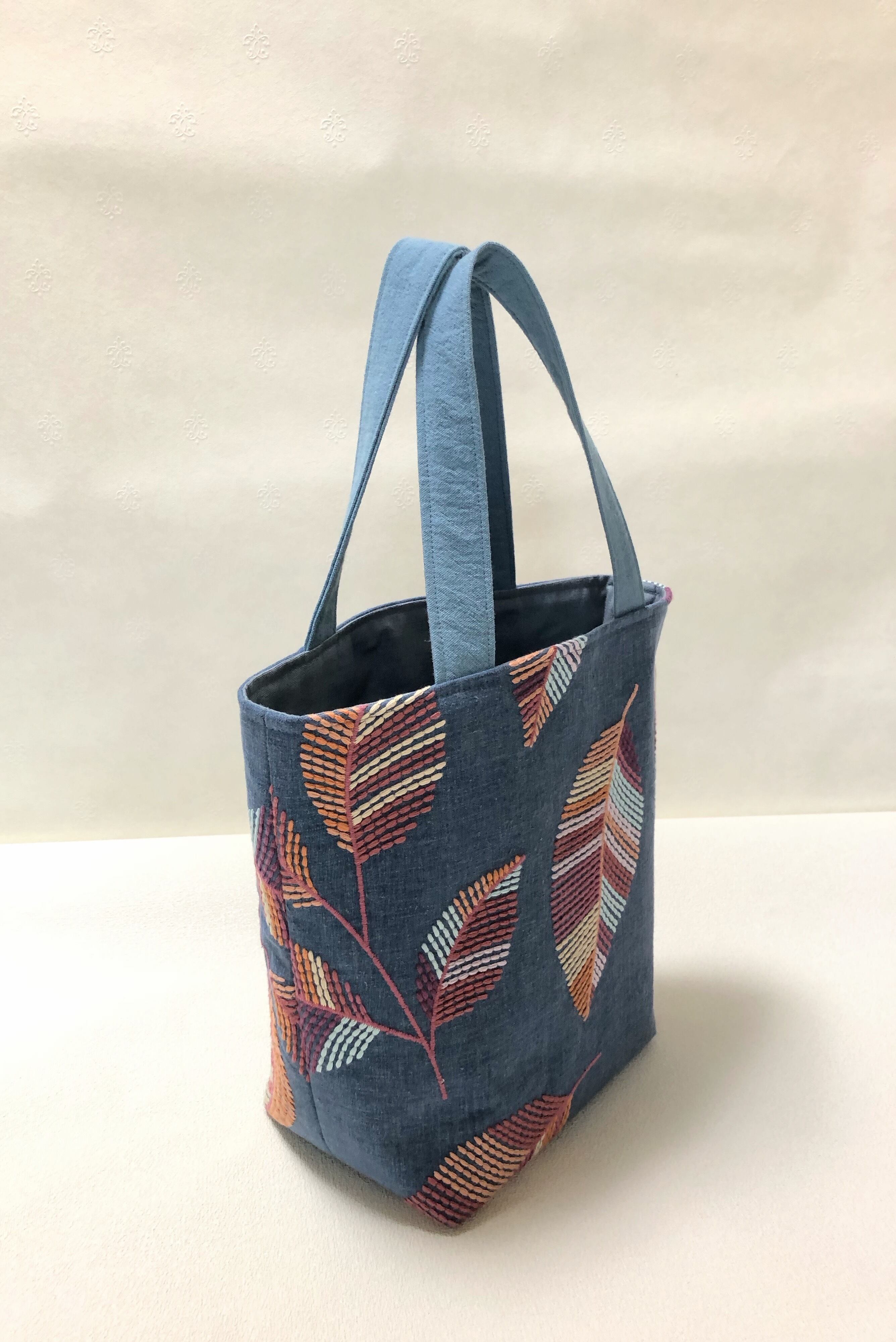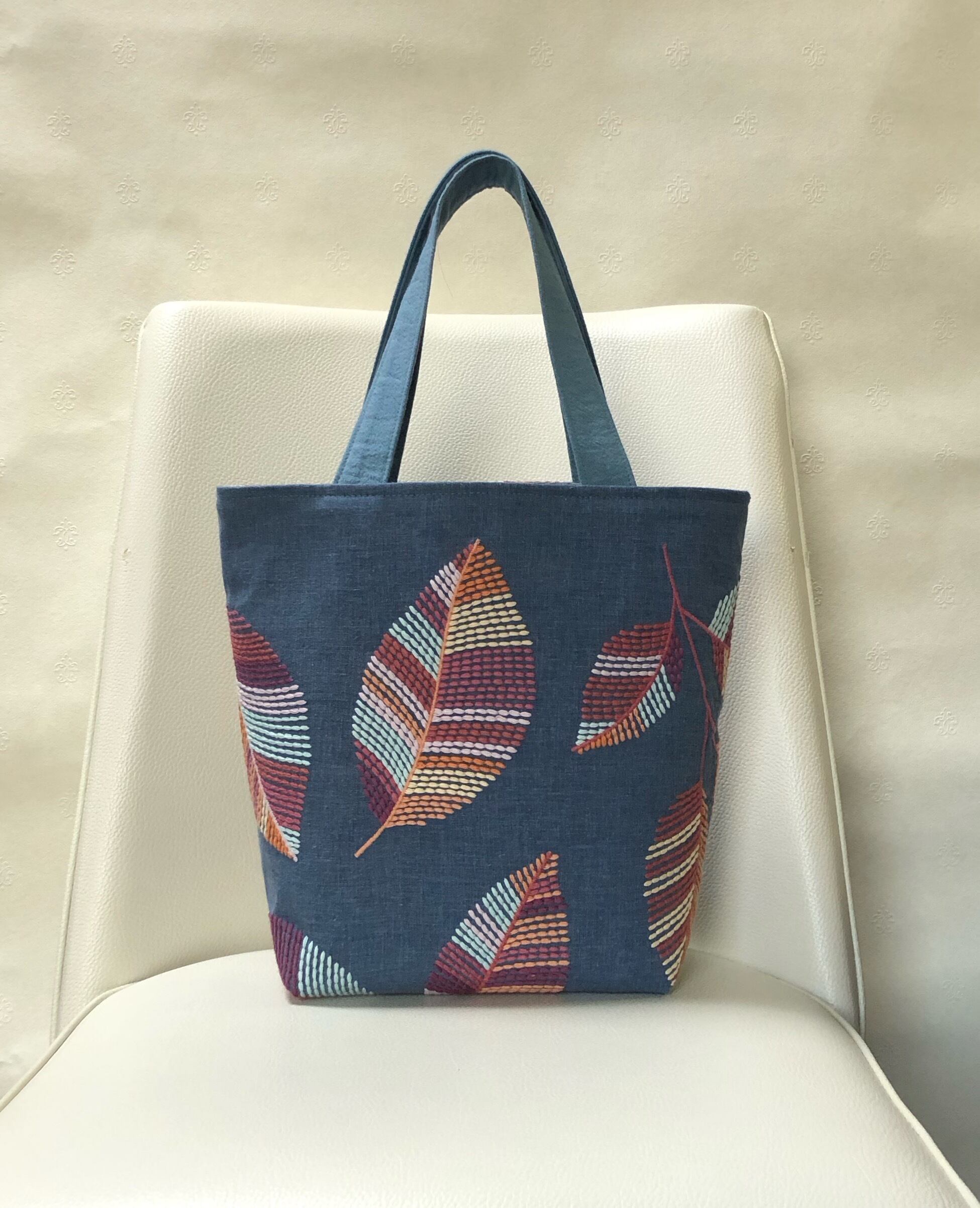 葉っぱ刺繍のトートバッグ