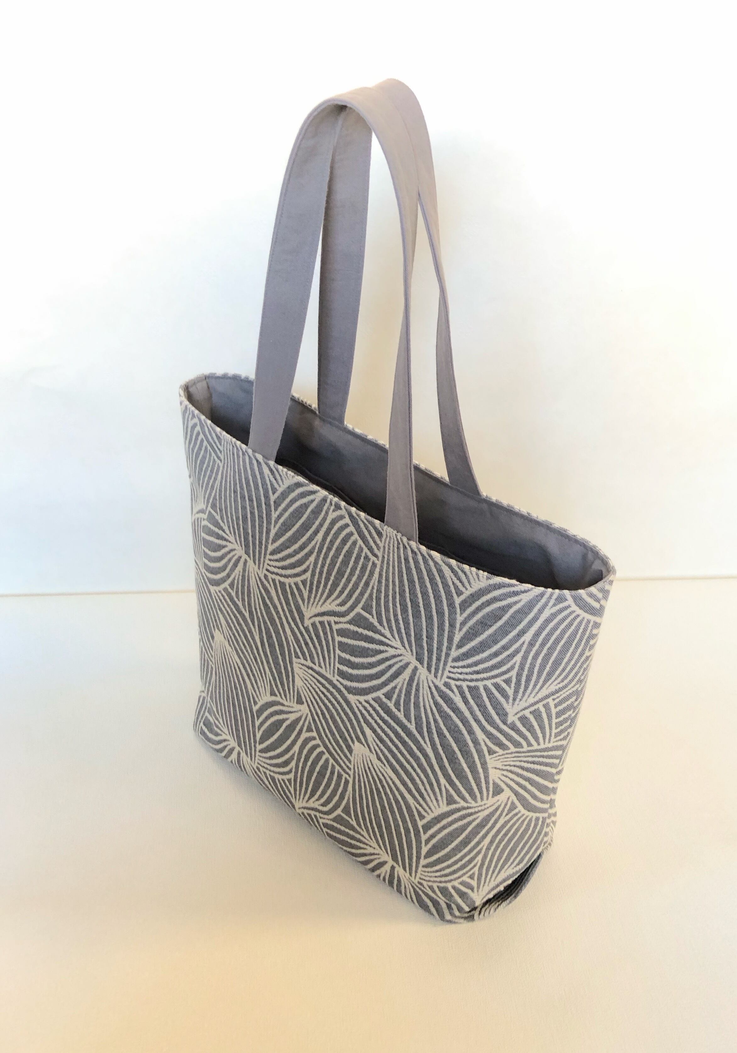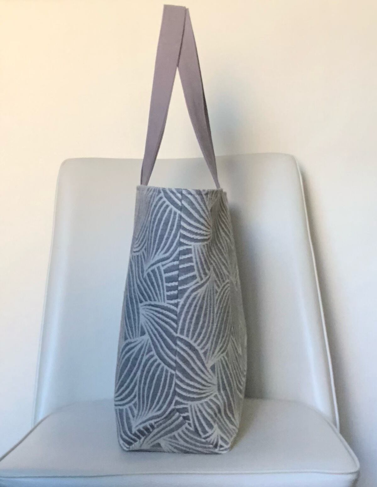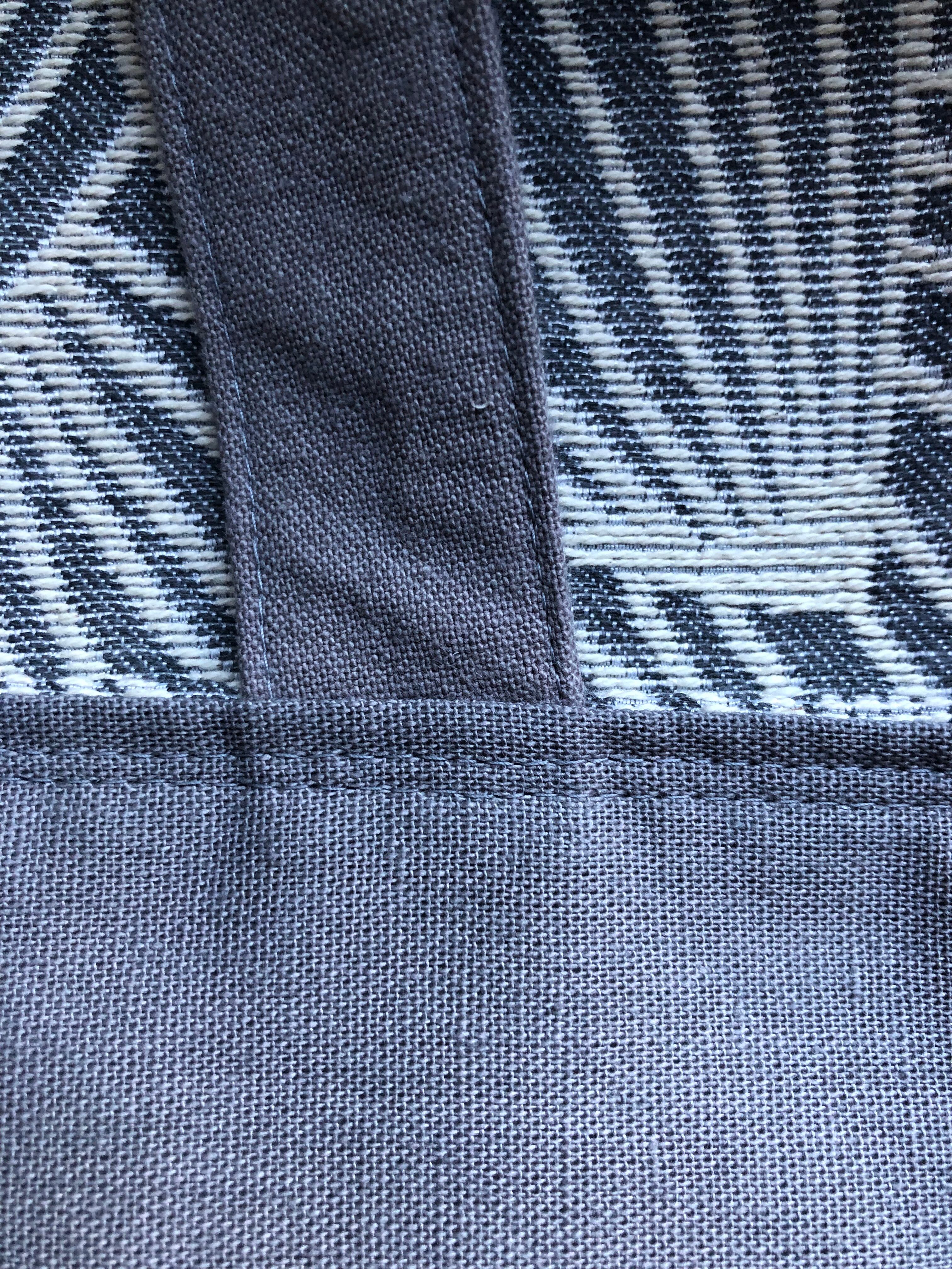 このバックはマチの部分が三角になるようにアクセントとして仕立ています。