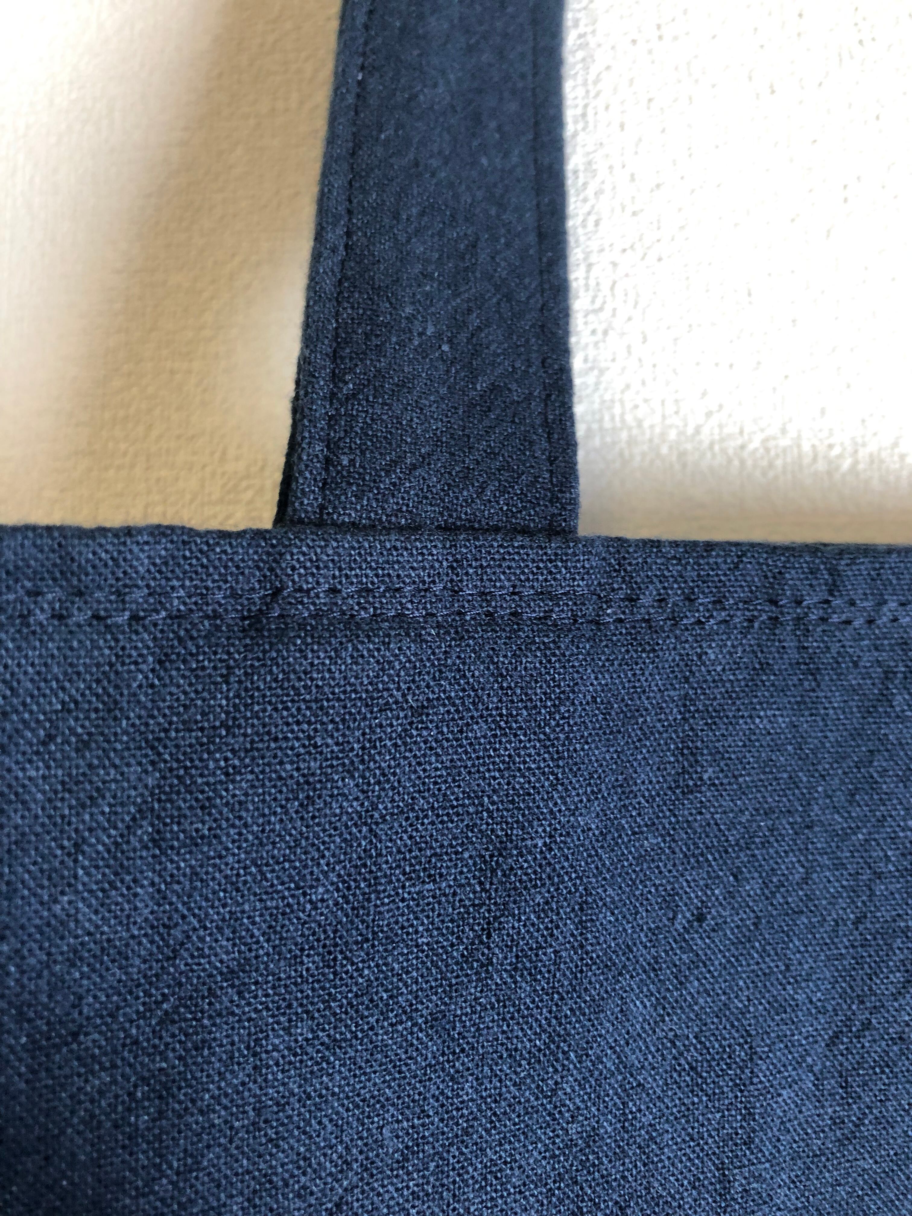 表地は厚手の綿麻生地を使用し、厚手の接着芯を張りしっかりしたバックです。