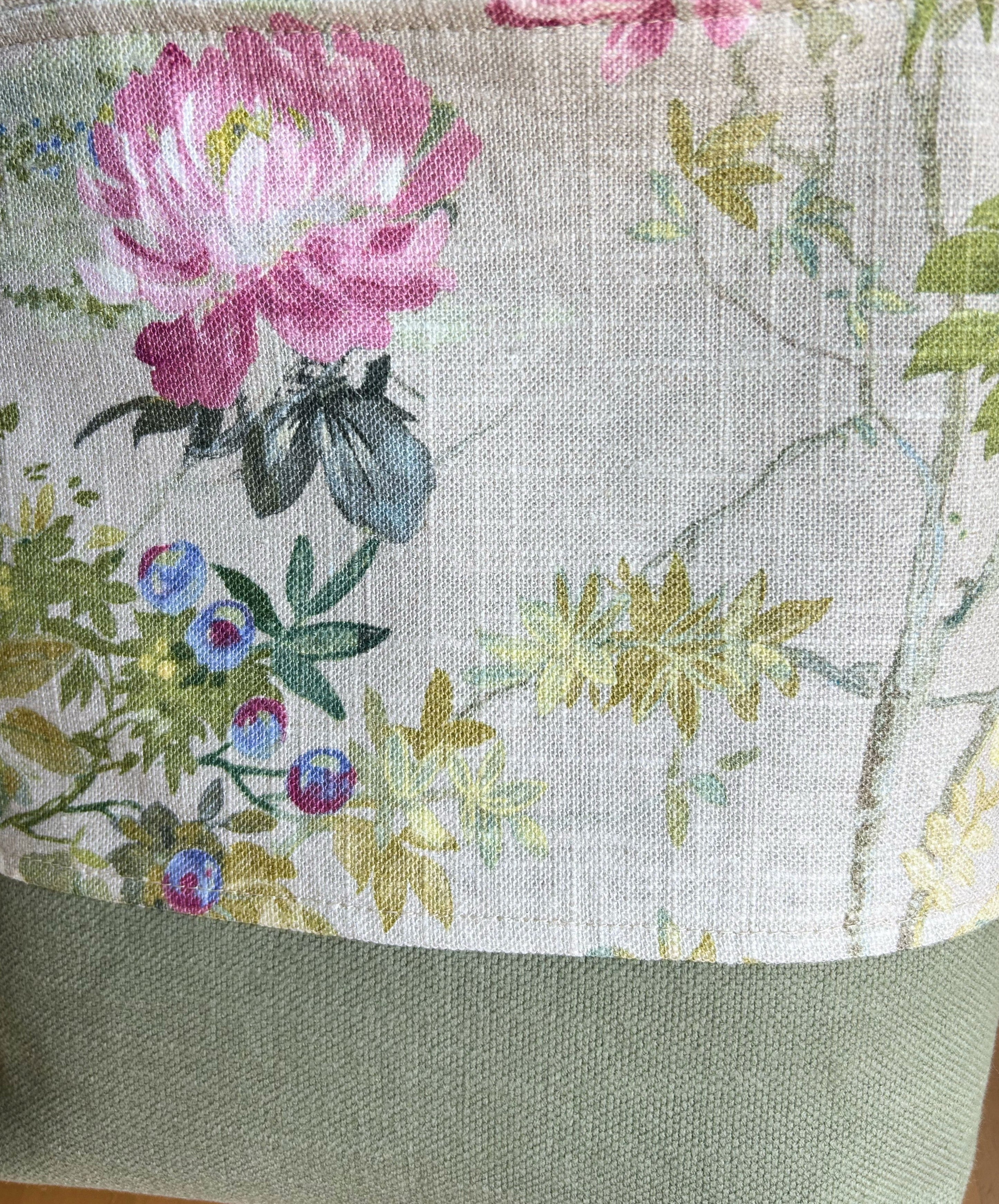 持ち手とツートンカラーのグリーンの生地は共にしっかりしたイギリスの生地を使用しています。