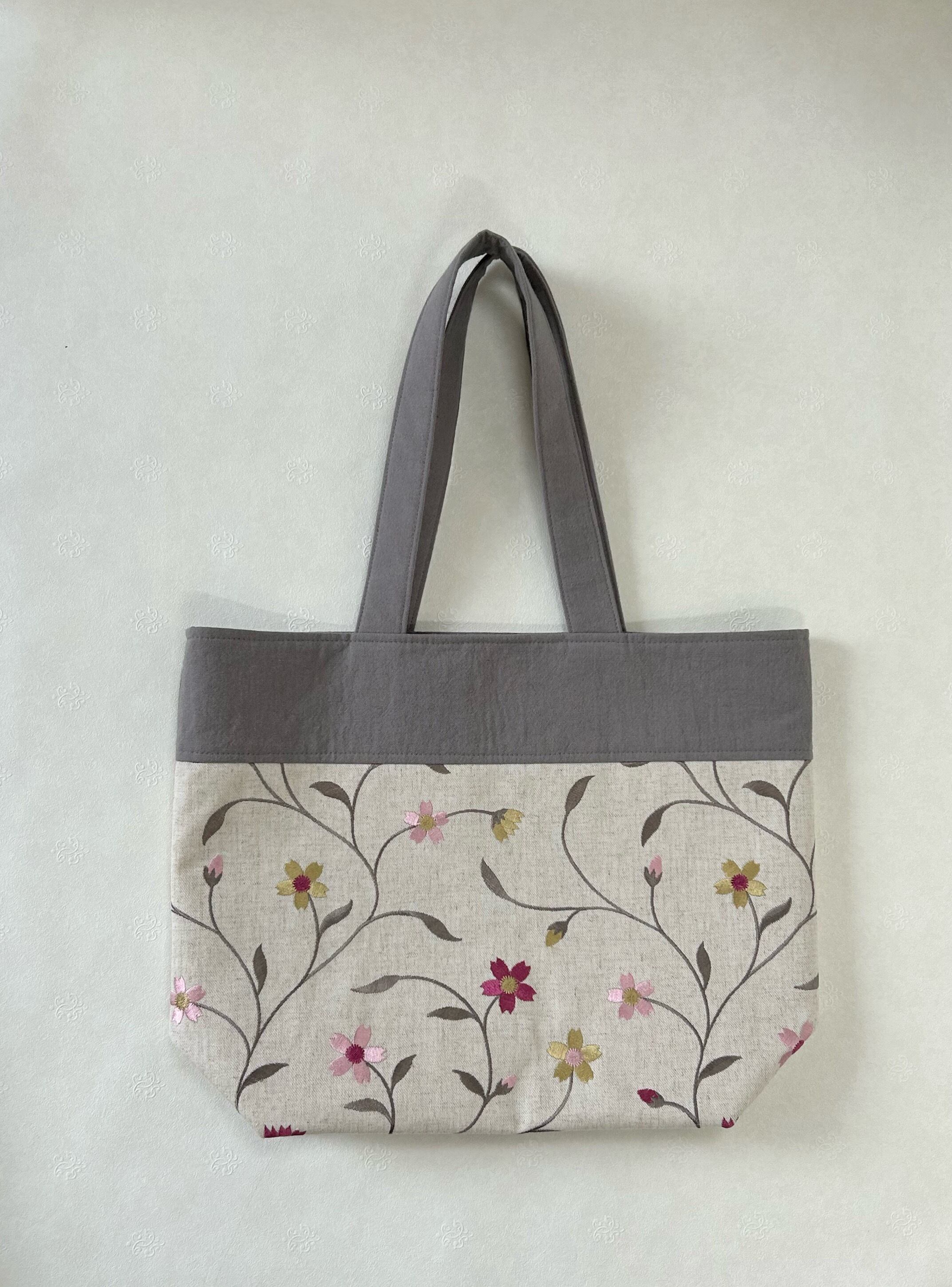 花刺繍大きめショルダートートバッグ