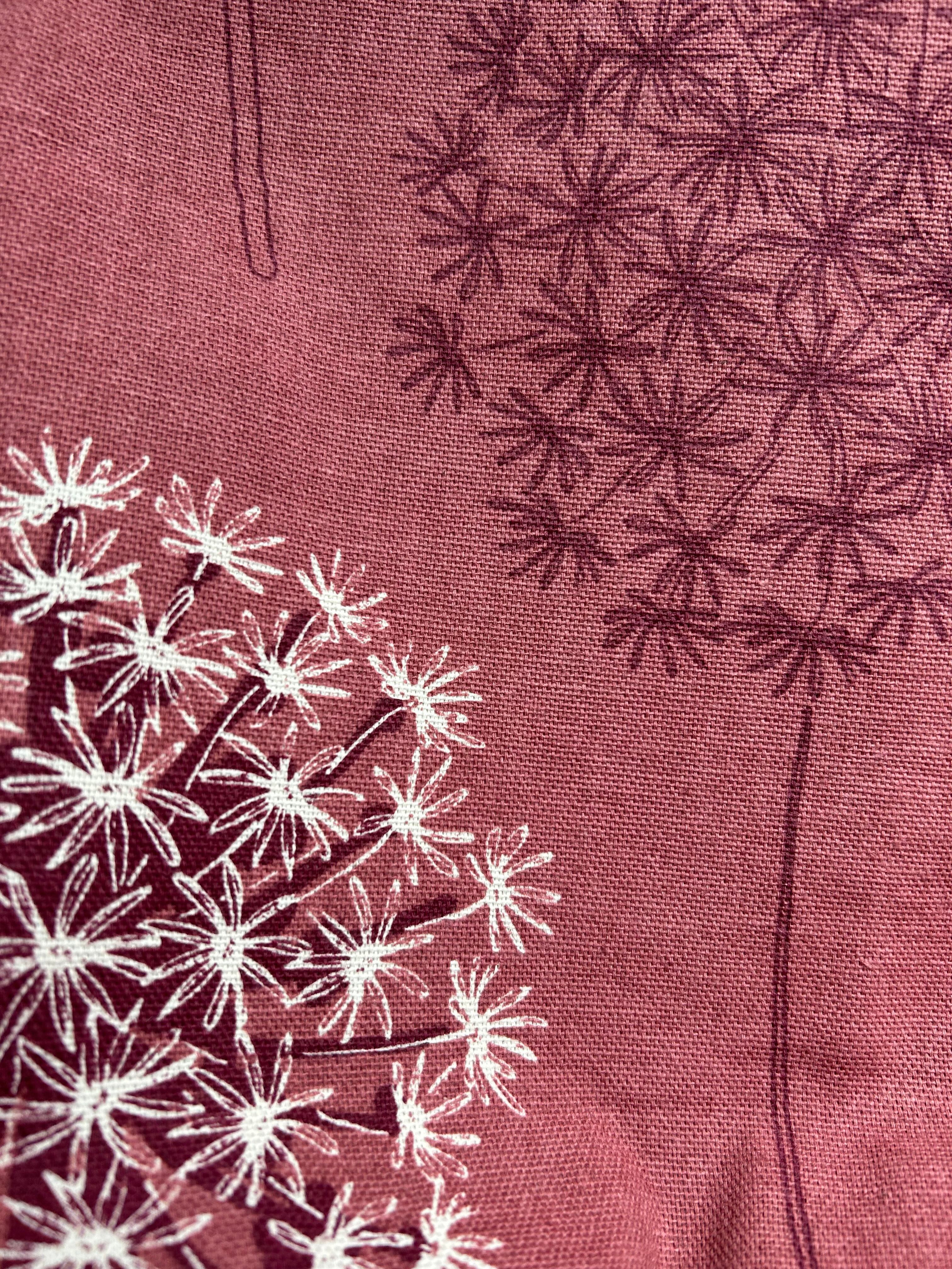 アラパンサスの花や、綿毛の様な花をモチーフにデザインされたフランスらしい配色と大胆な大花のプリント柄が目を引きます。