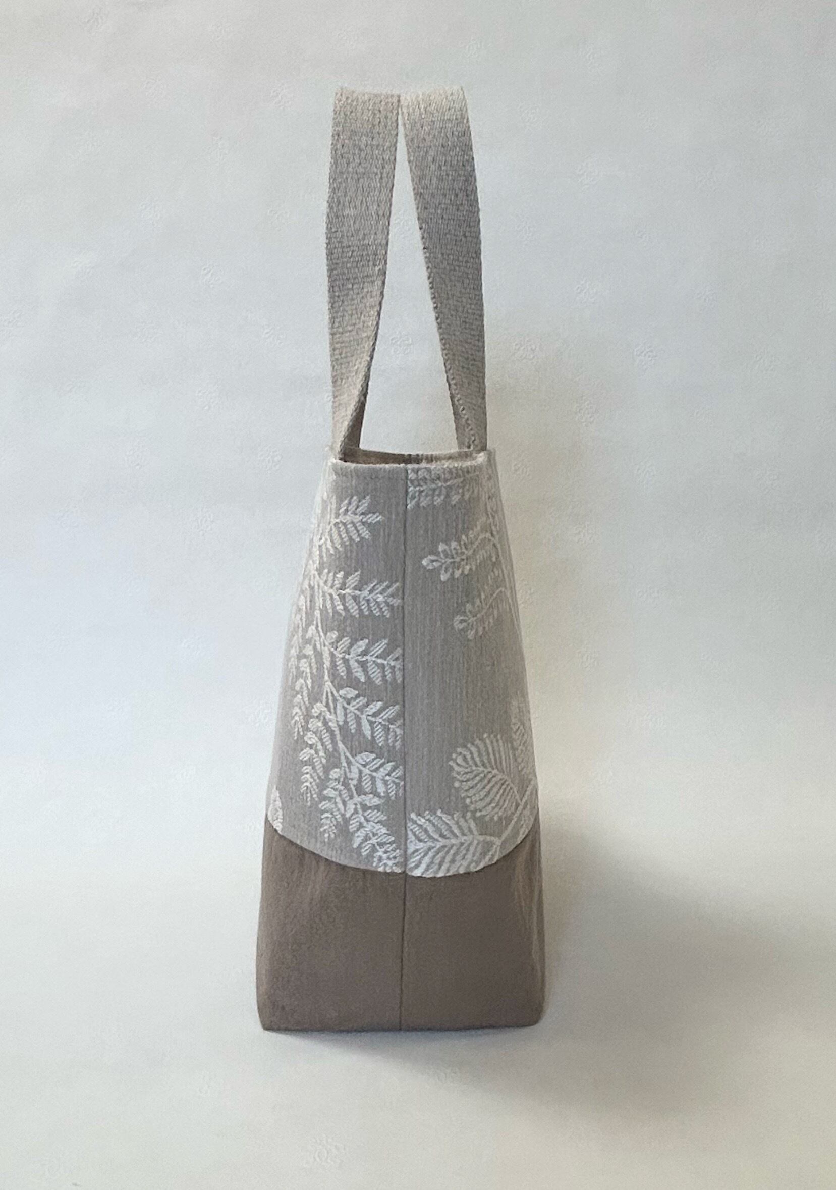 ボタニカル柄ジャガード織のツートントートバッグ