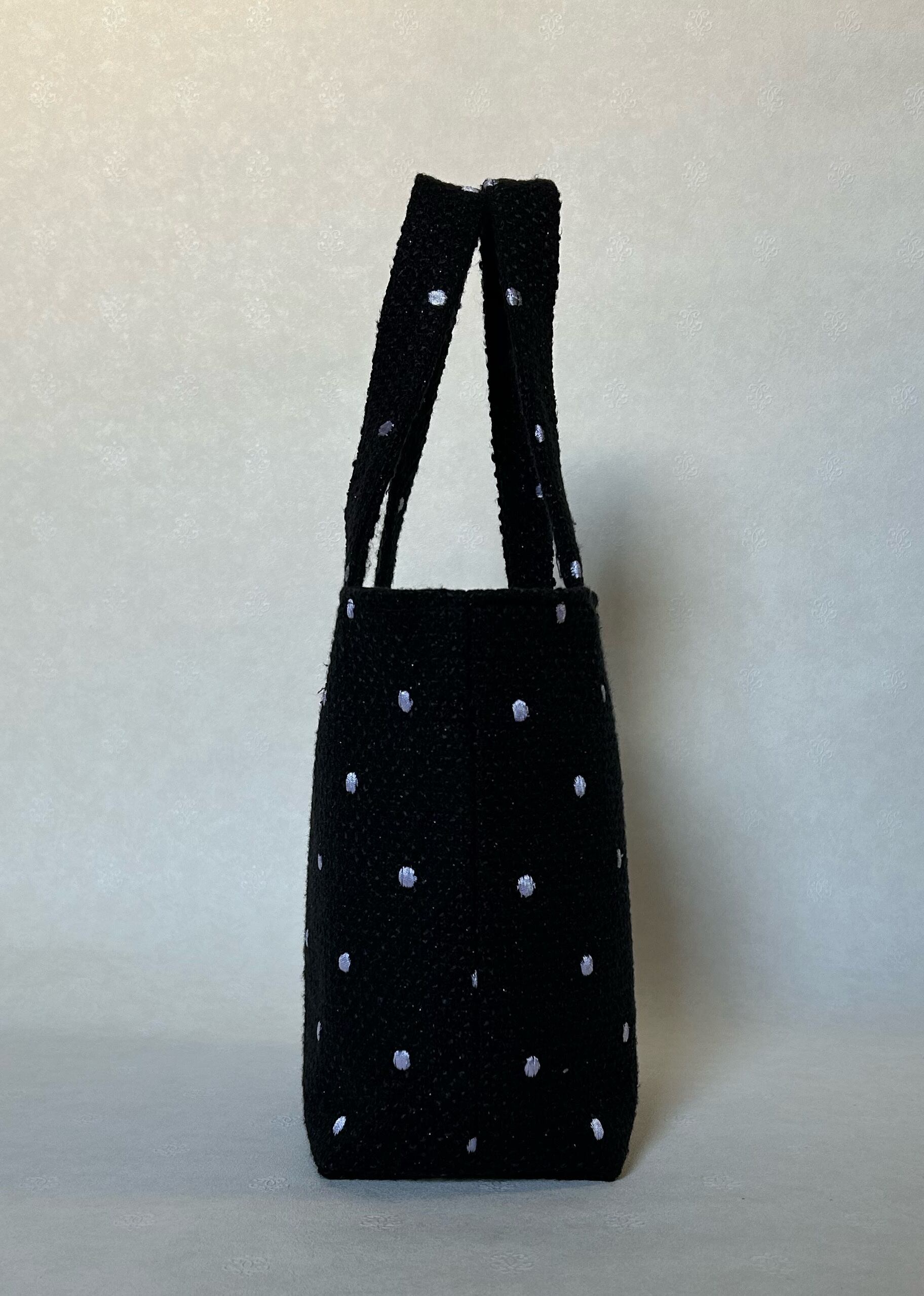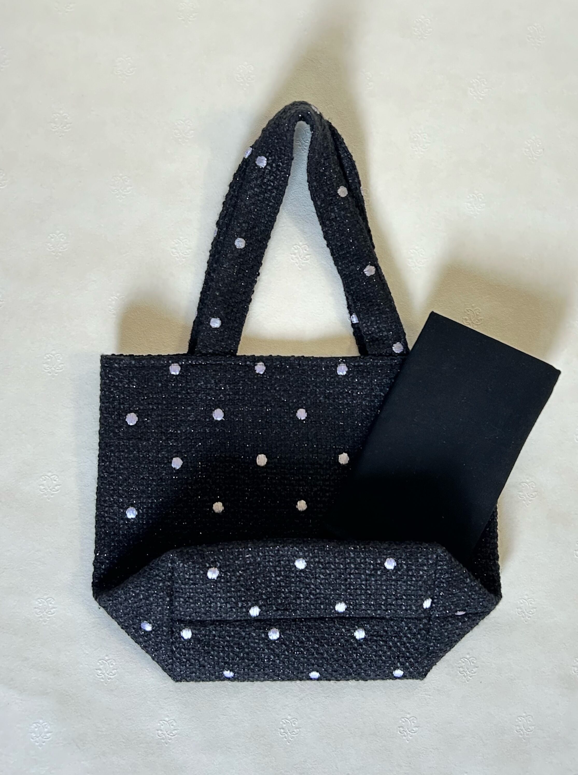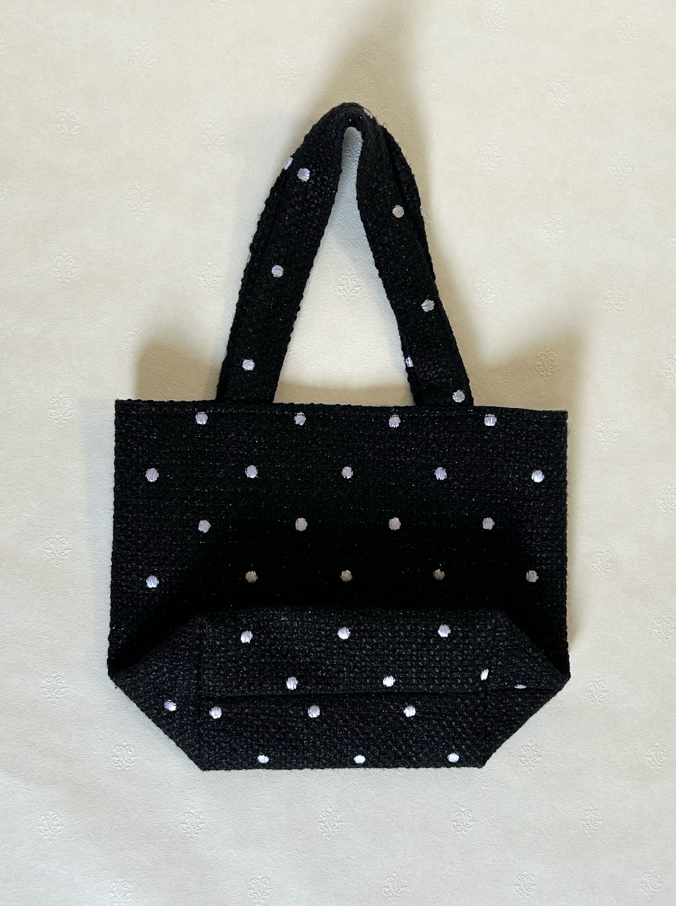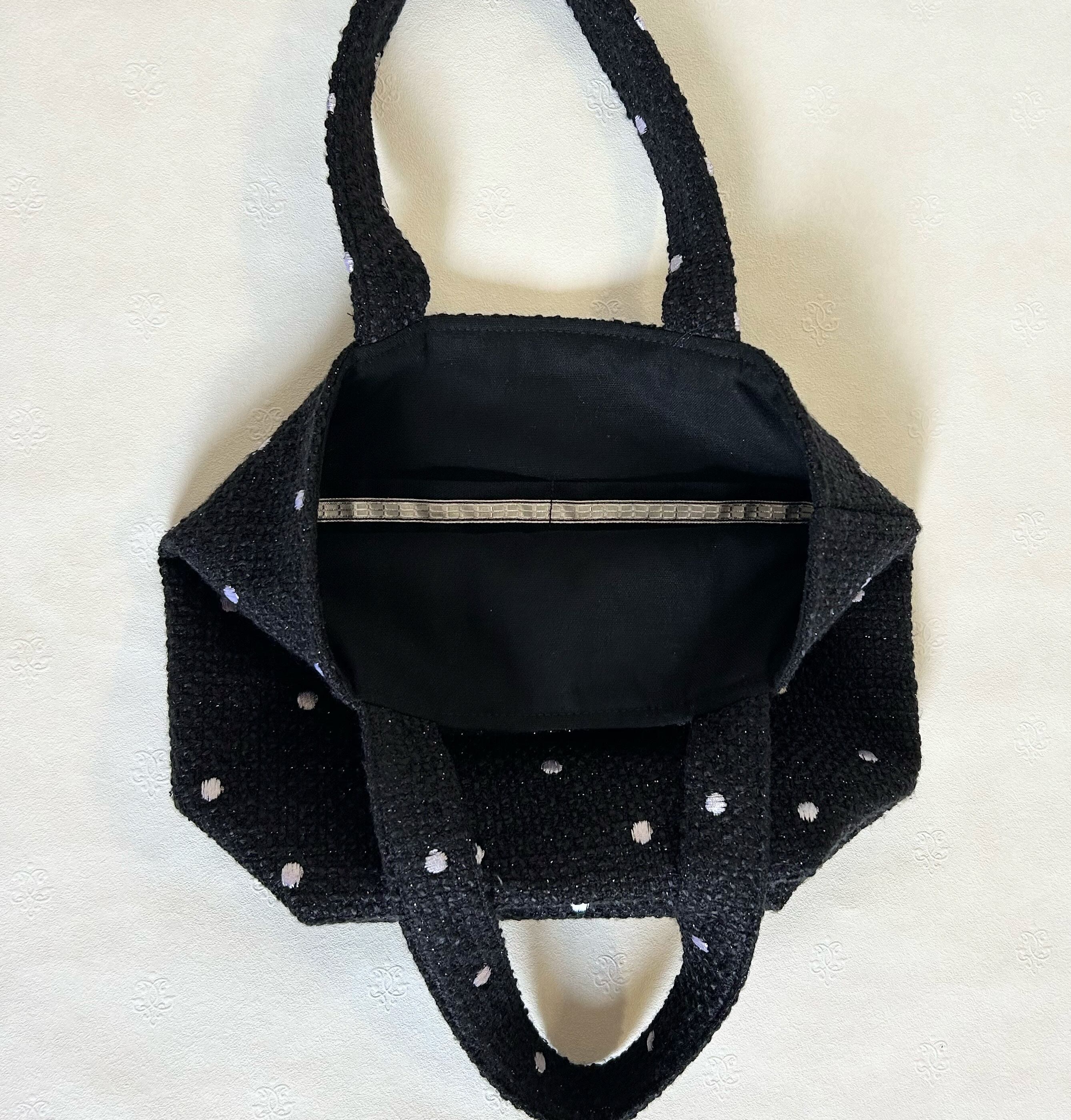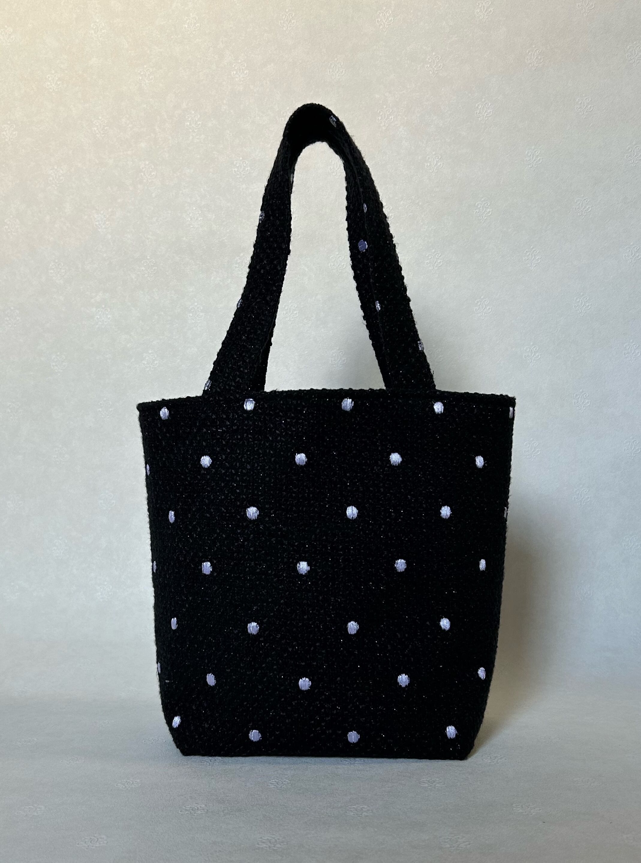 白ドット柄黒ツイードのトートバッグ