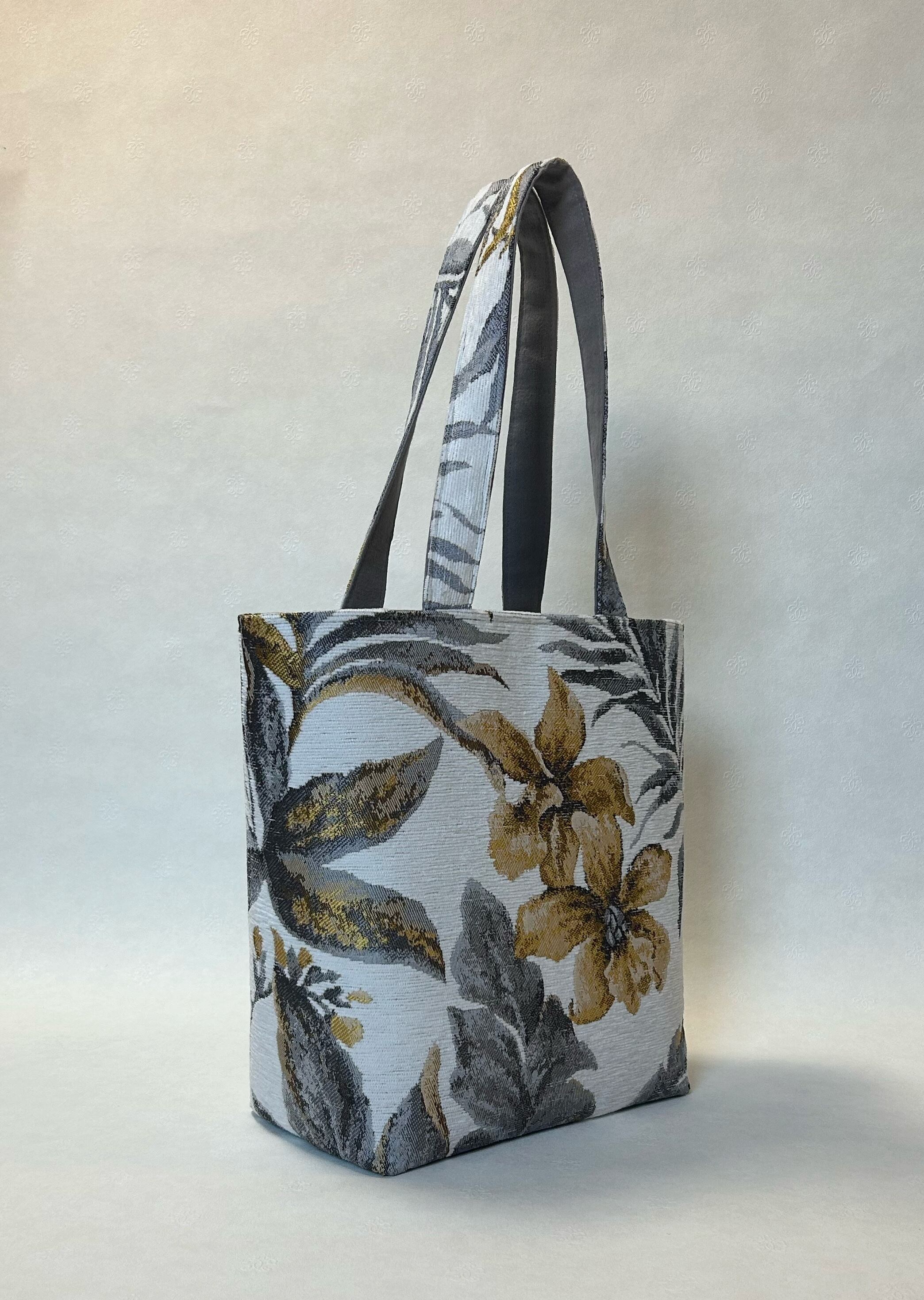 華やかな花柄が特徴のゴブラン織で、優雅な雰囲もあり、しっかりとした生地感と柔らかな手触りが魅力です。大きめのサイズ感は、日常使いはもちろん、ちょっとしたお出かけにもぴったりです。