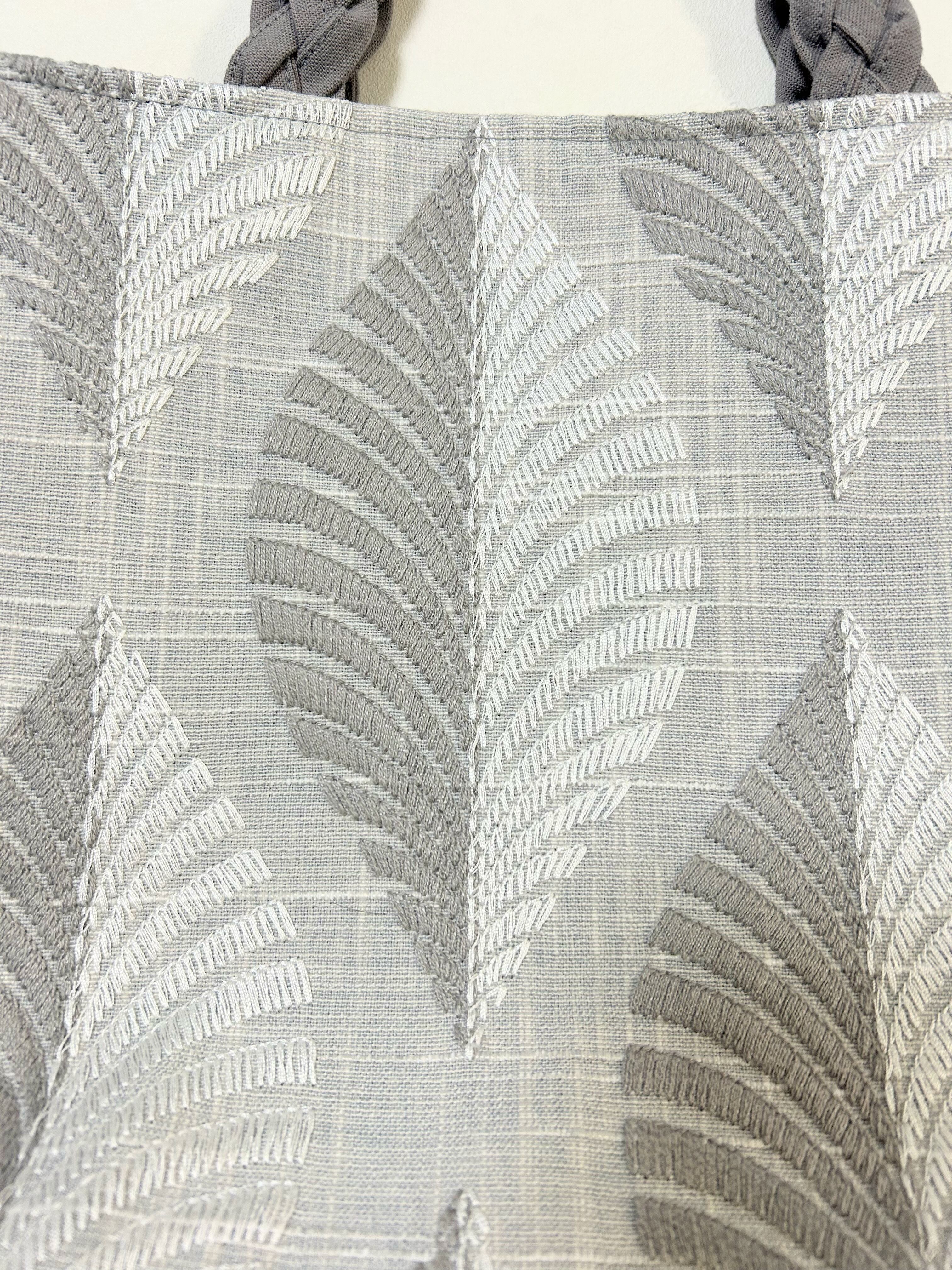 葉刺繍、四つ編み持ち手のトートバッグ